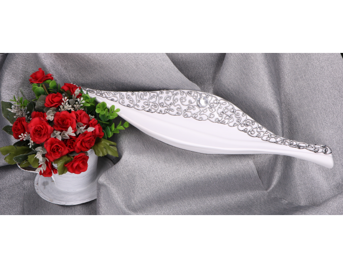 Ceramika jest wypalana dzięki czemu w swojej konsystencji pozostaje mocnym materiałem, trwałym i dość odpornym na stłuczenia. Wykończenie produktu jest natomiast pokryte srebrnym zdobionym klejem.