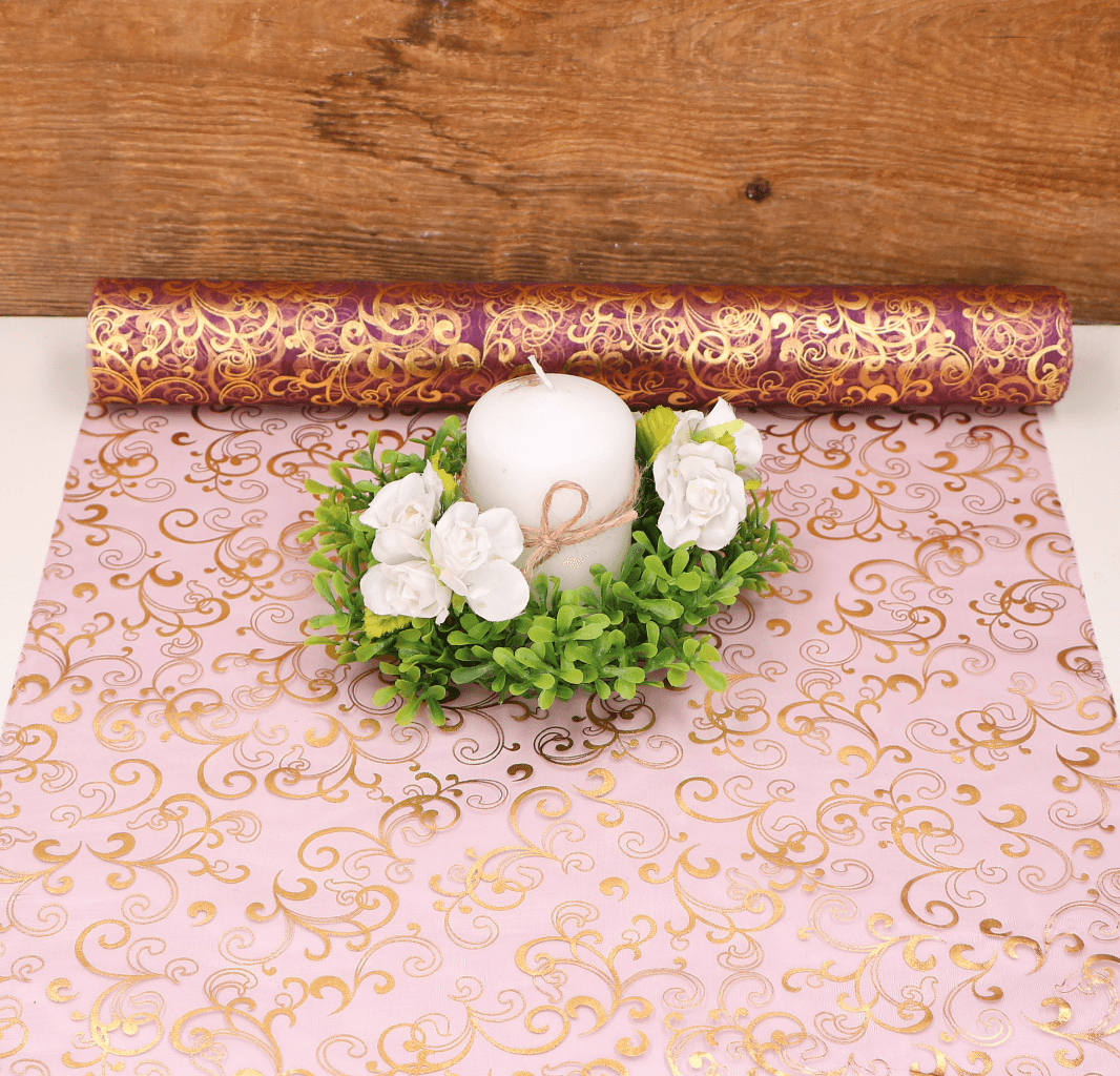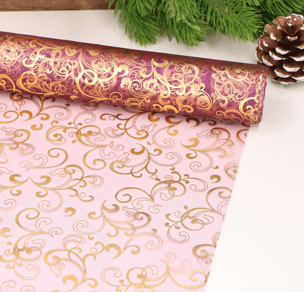 - Organza umieszczona jest na rolce, co ułatwia rozłożenie jej na stole