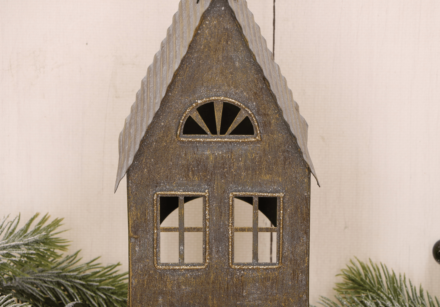 Metalowy domek dekoracyjny z miejscem na tealight – 23 cm