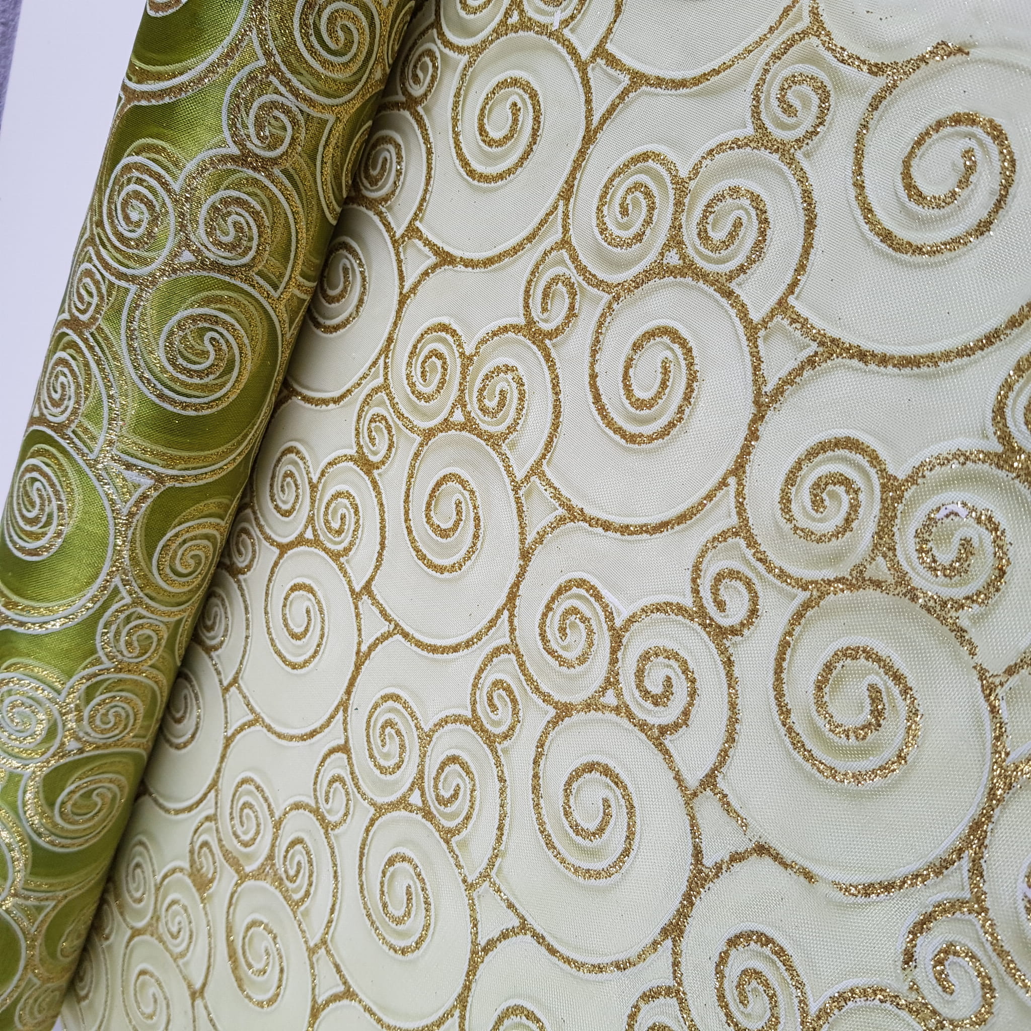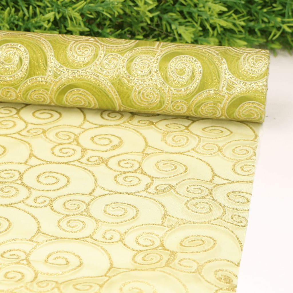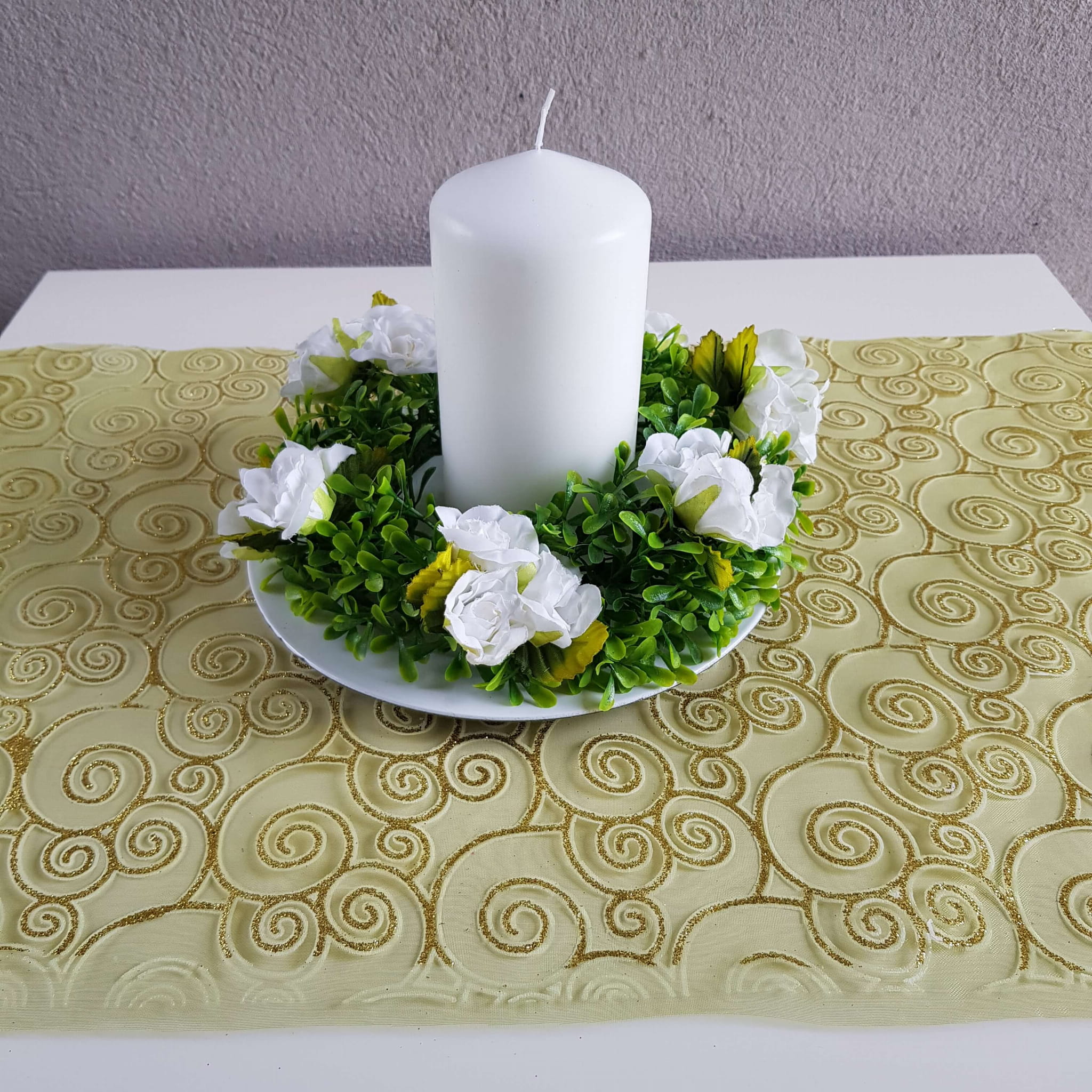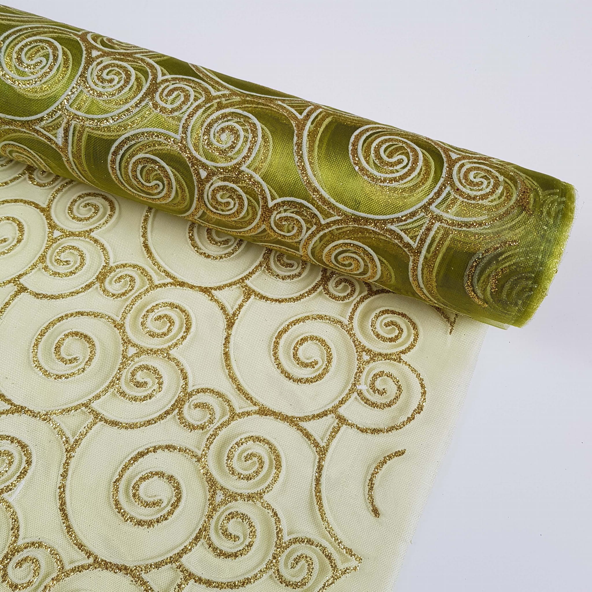Organza materiał bieżnik wzór oliwka, złoto 36cm 9m