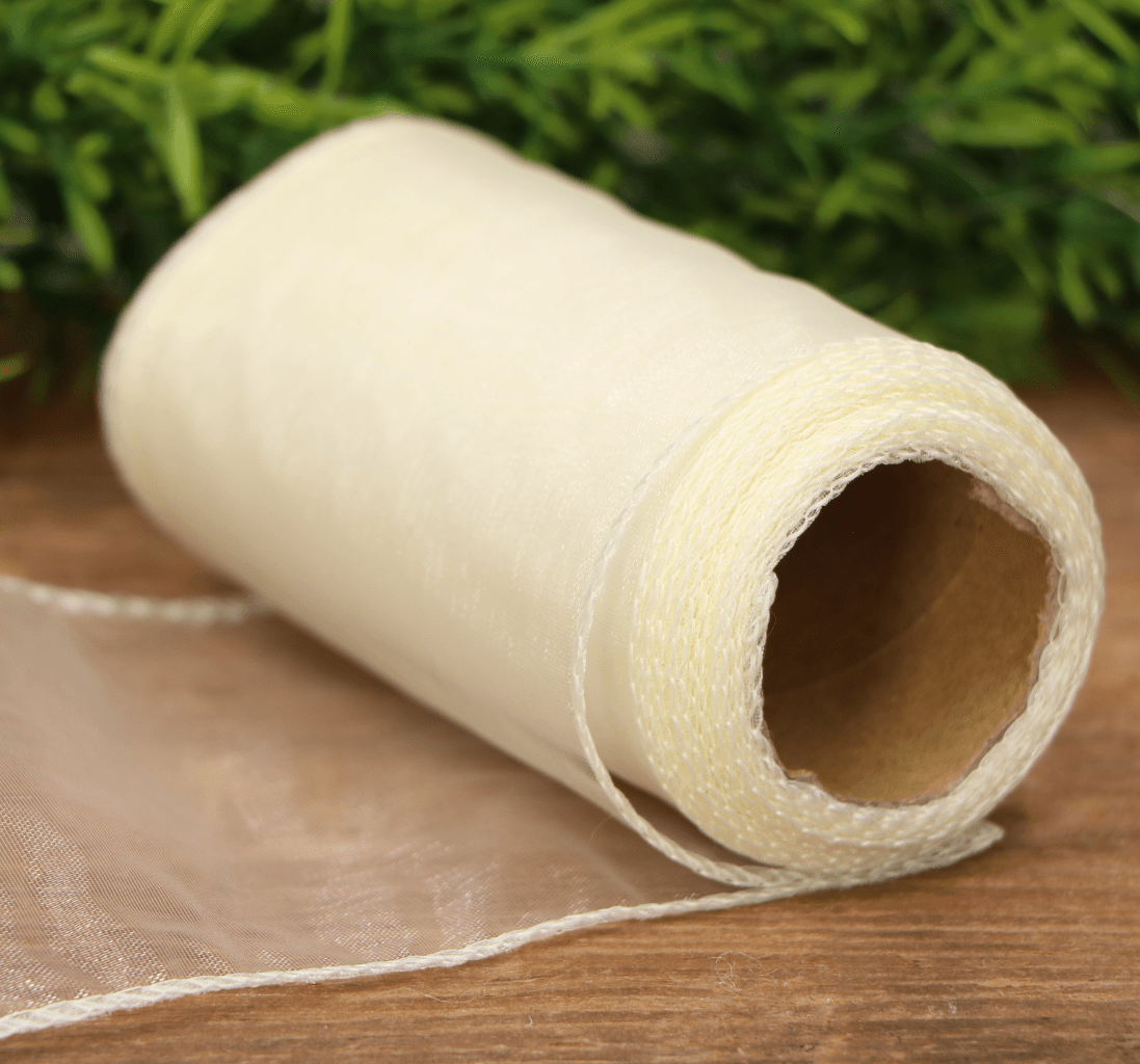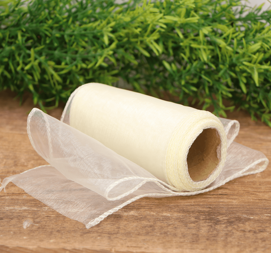 - Organza umieszczona jest na rolce, co ułatwia rozłożenie jej na stole