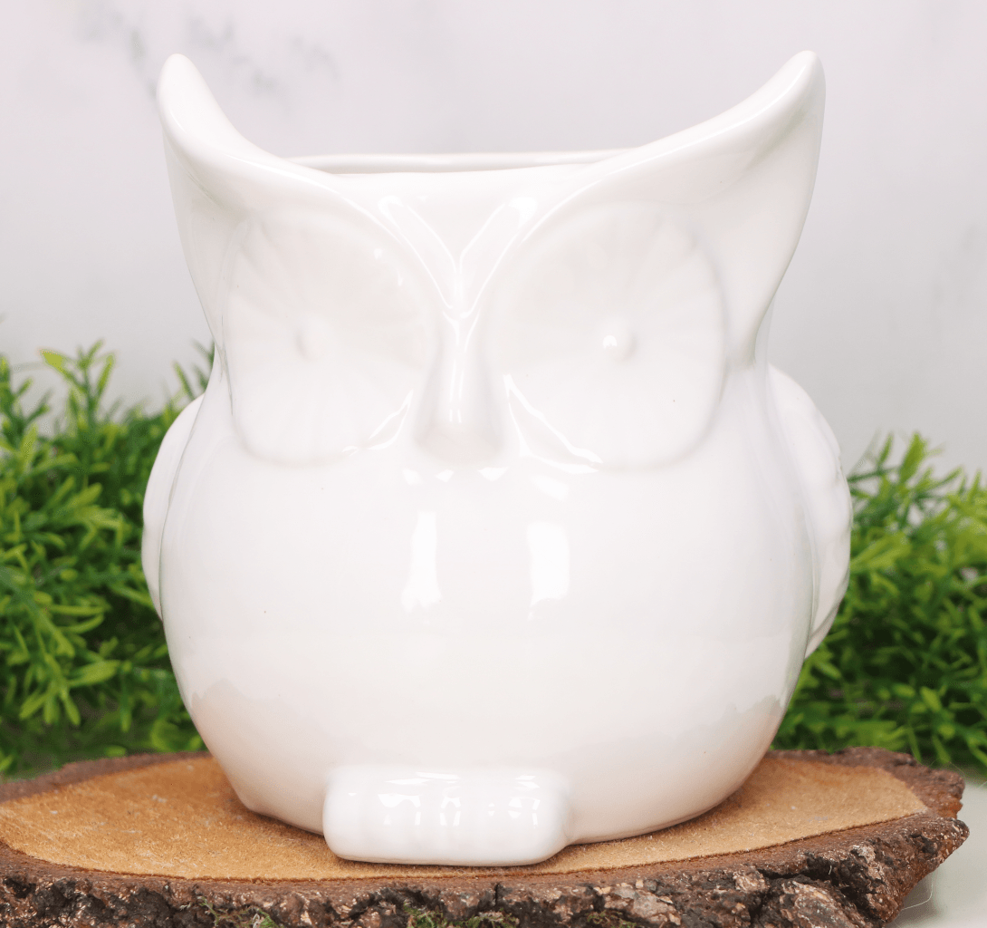 Osłonka ceramiczna sowa biała 14cm