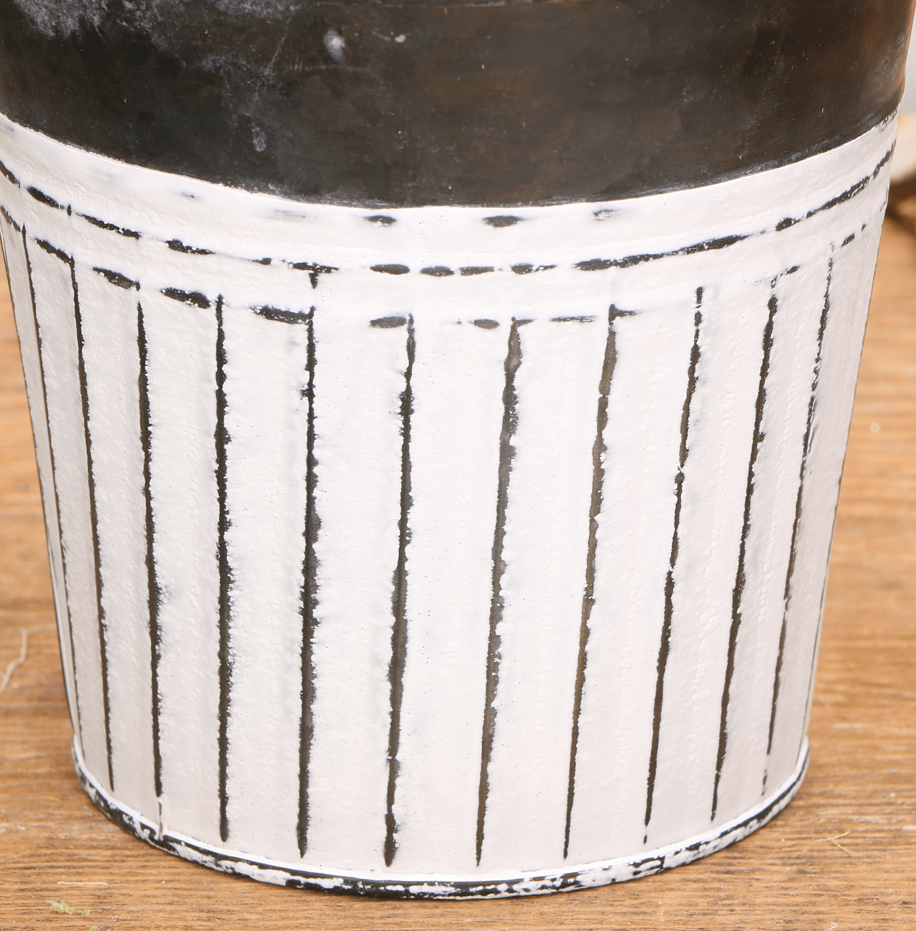 Osłonka doniczka metalowa szaro-biała w paski 12cm