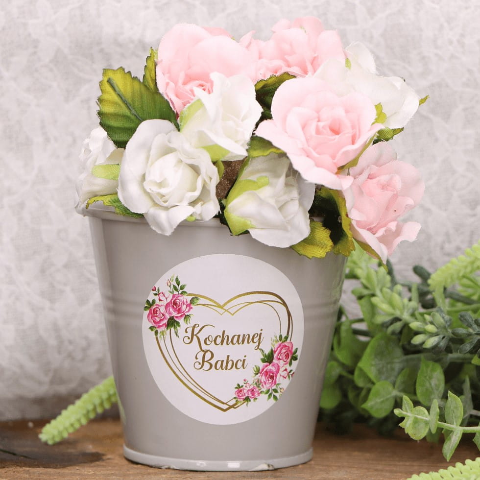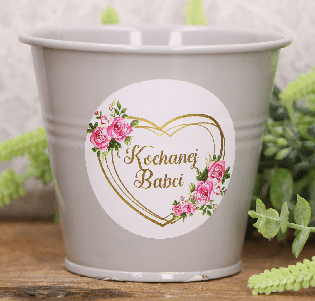 Metalowa doniczka na Kwiaty z naklejką na Dzień babci
