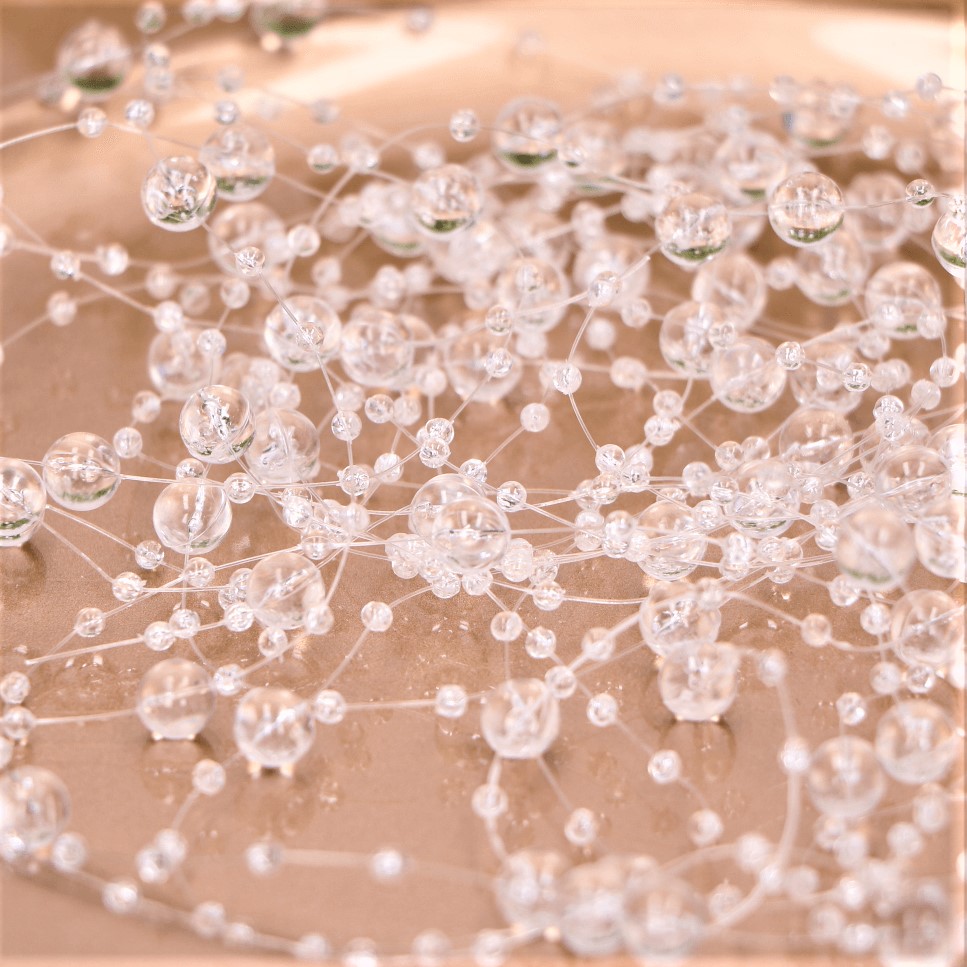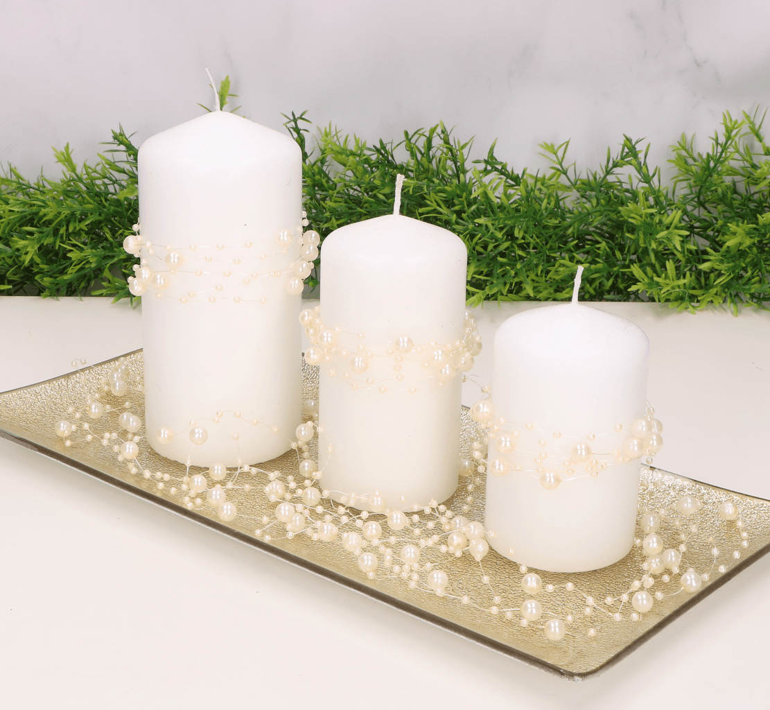 Perełki zostały zamocowane na żyłce, które tworzą girlandę. Girlandy są świetnym dodatkiem do wielu rodzajów dekoracji i aranżacji. Urocze i delikatne perełki na żyłce będą doskonałym dodatkiem do wystroju sali weselnej, komunijnej, na chrzest, jak również w aranżacjach domowego zacisza, przy dekoracji świec, itd. W okresie świątecznym sprawdzą się do dekoracji choinki jako łańcuch, wianuszek, lub ułożone na obrusie jako dekoracja stołu.