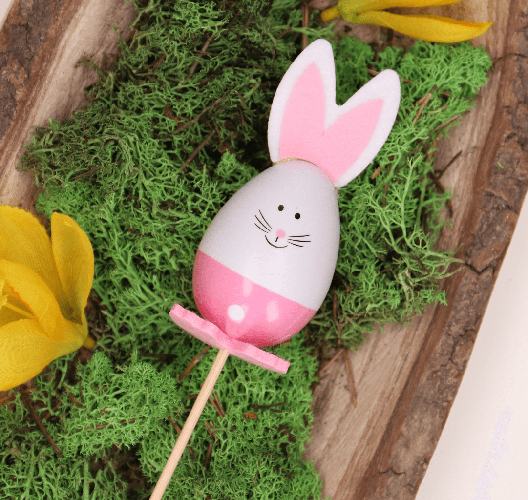 Zbliżają się Święta Wielkanocne. Aby wnieść do wnętrza więcej Świątecznego klimatu, możesz udekorować mieszkanie zajączkami w wiosennych, wyrazistych kolorach, takich jak różowy i zielony. Zajączki zostały umiejscowione na piku, dzięki czemu możesz je dołączyć np. do bukietu, flowerboxa, doniczek, świątecznych stroików lub użyć ich jako ozdoba do Babki Wielkanocnej. Piki można później wykorzystać do ozdoby wnętrz, umieszczając je np. w doniczce z kwiatami.