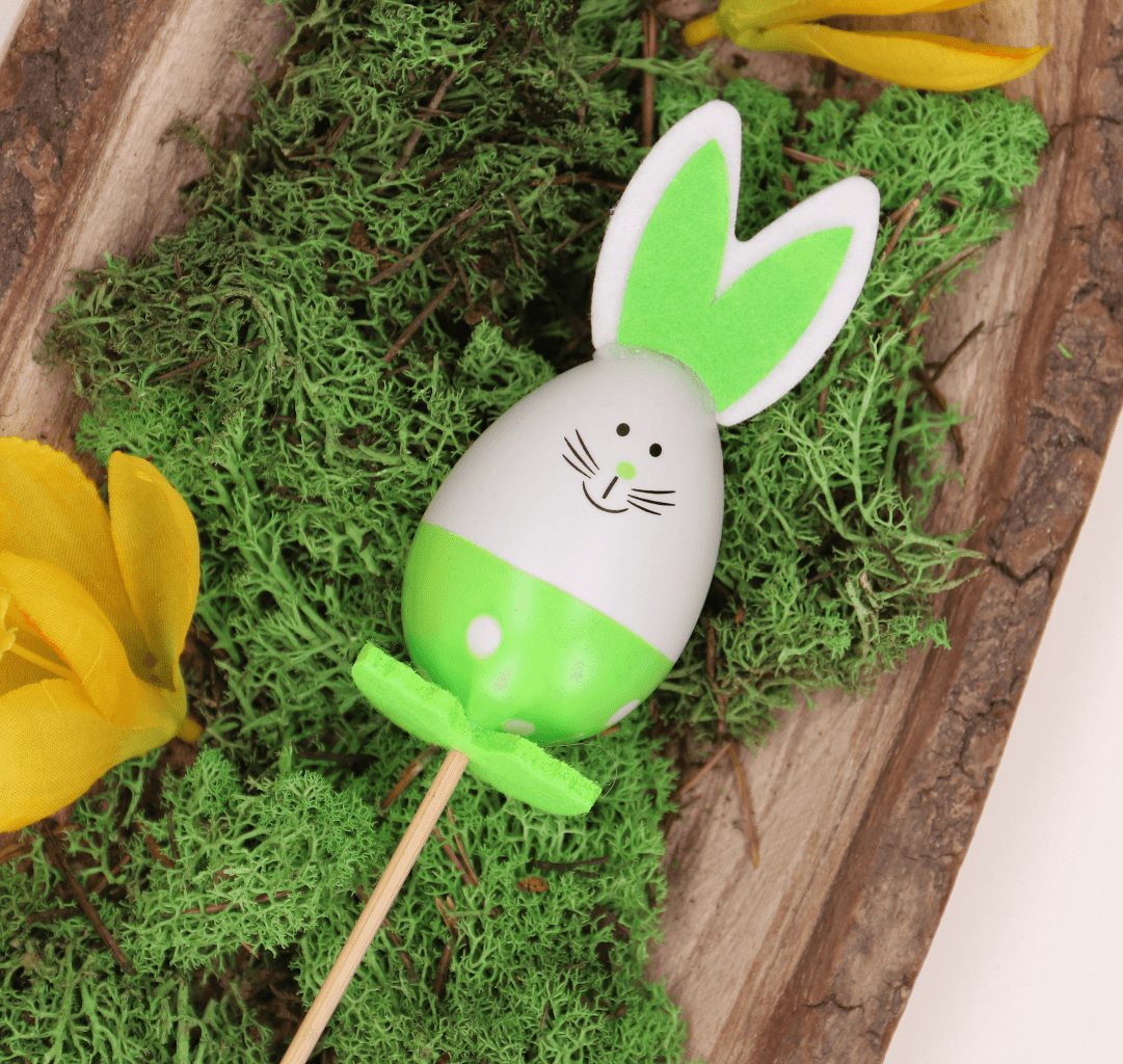 Zbliżają się Święta Wielkanocne. Aby wnieść do wnętrza więcej Świątecznego klimatu, możesz udekorować mieszkanie zajączkami w wiosennych, wyrazistych kolorach, takich jak różowy i zielony. Zajączki zostały umiejscowione na piku, dzięki czemu możesz je dołączyć np. do bukietu, flowerboxa, doniczek, świątecznych stroików lub użyć ich jako ozdoba do Babki Wielkanocnej. Piki można później wykorzystać do ozdoby wnętrz, umieszczając je np. w doniczce z kwiatami.