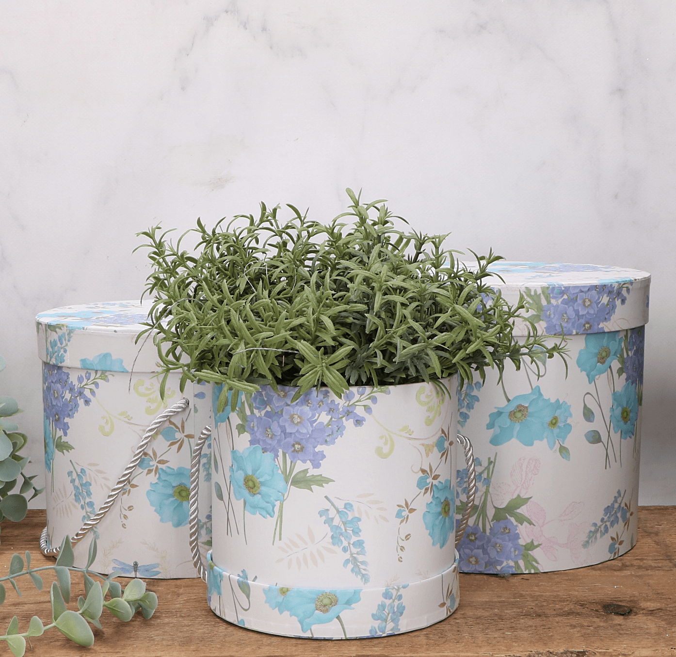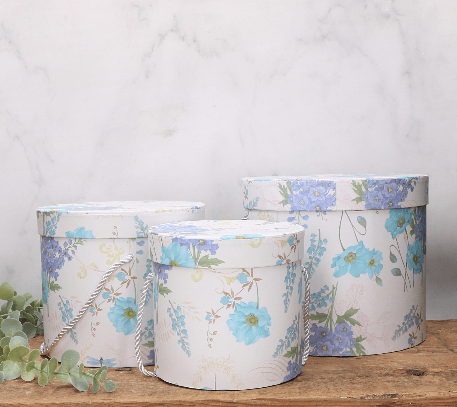 Pudełko flowerbox potrójny błękitne kwiaty - MIX rozmiarów