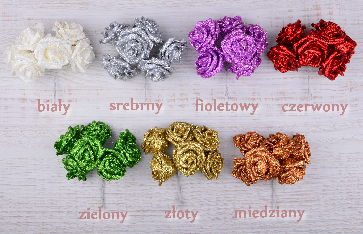 Różyczki nadają się do dekoracji, są oprószone brokatem,