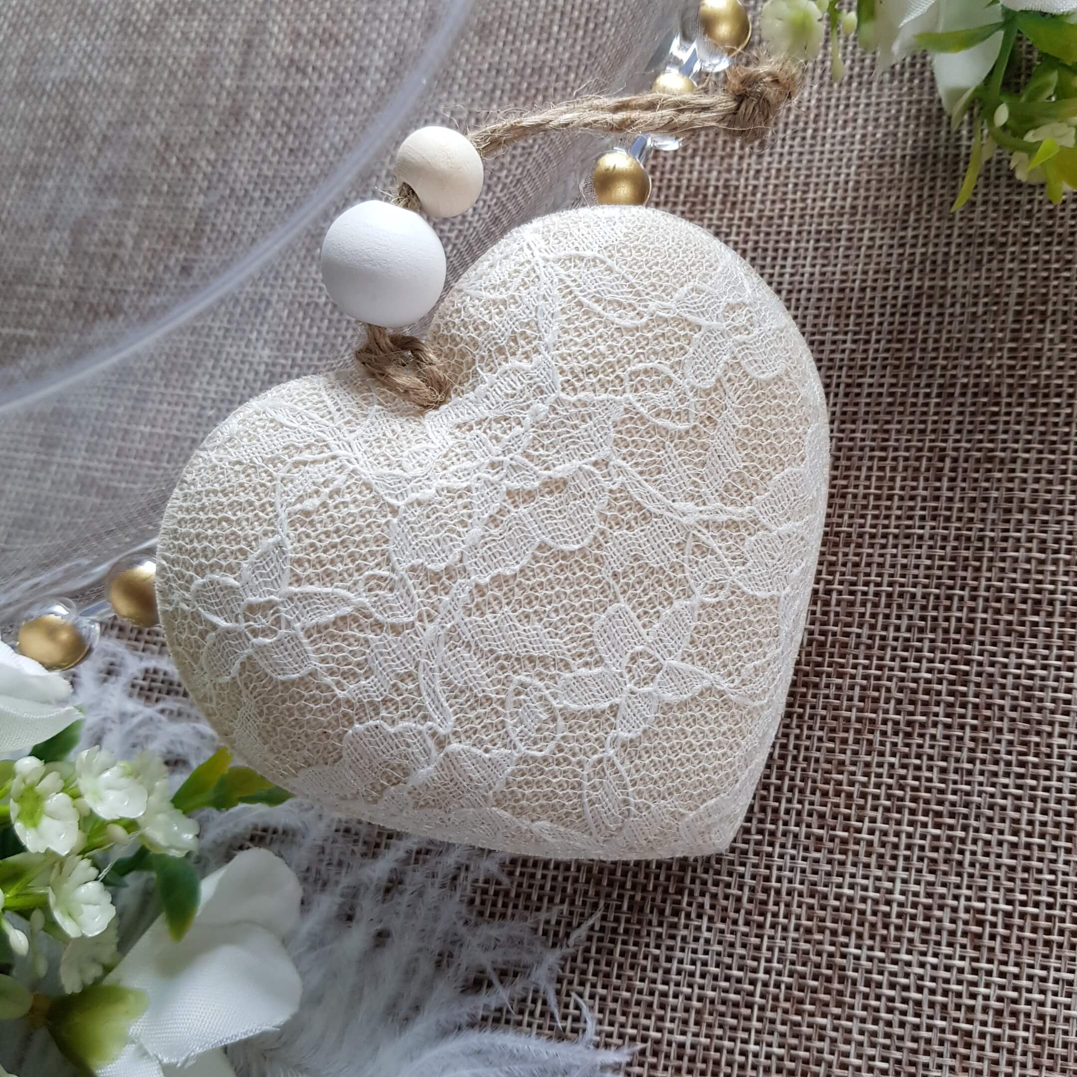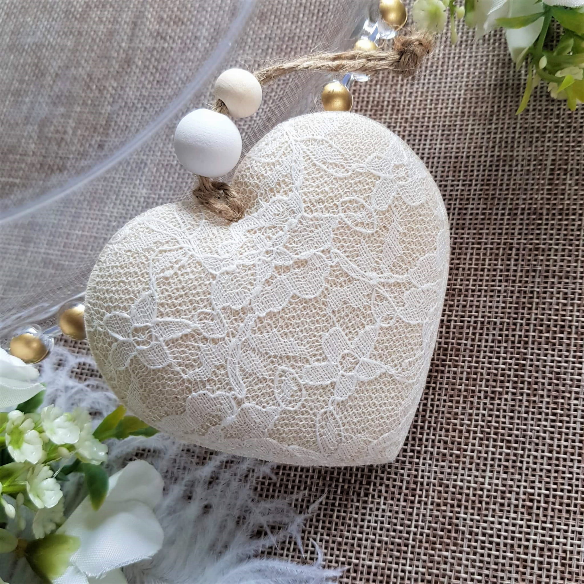 Materiałowa zawieszka w kształcie serca symbolizuje miłość, będzie pięknie się prezentować jako dodatek do ślubnych aranżacji. Zawieszki znajdą swoje zastosowanie również jako element dekoracyjny sali weselnych i komunijnych m.in można dzięki nim stworzyć niepowtarzalny stroik lub ściankę zdjęciową. Serduszka posłużą również jako ozdoba całoroczna. Możesz wykorzystać je na klamce samochodu ślubnego, jako ozdoba krzeseł, ścian itp.