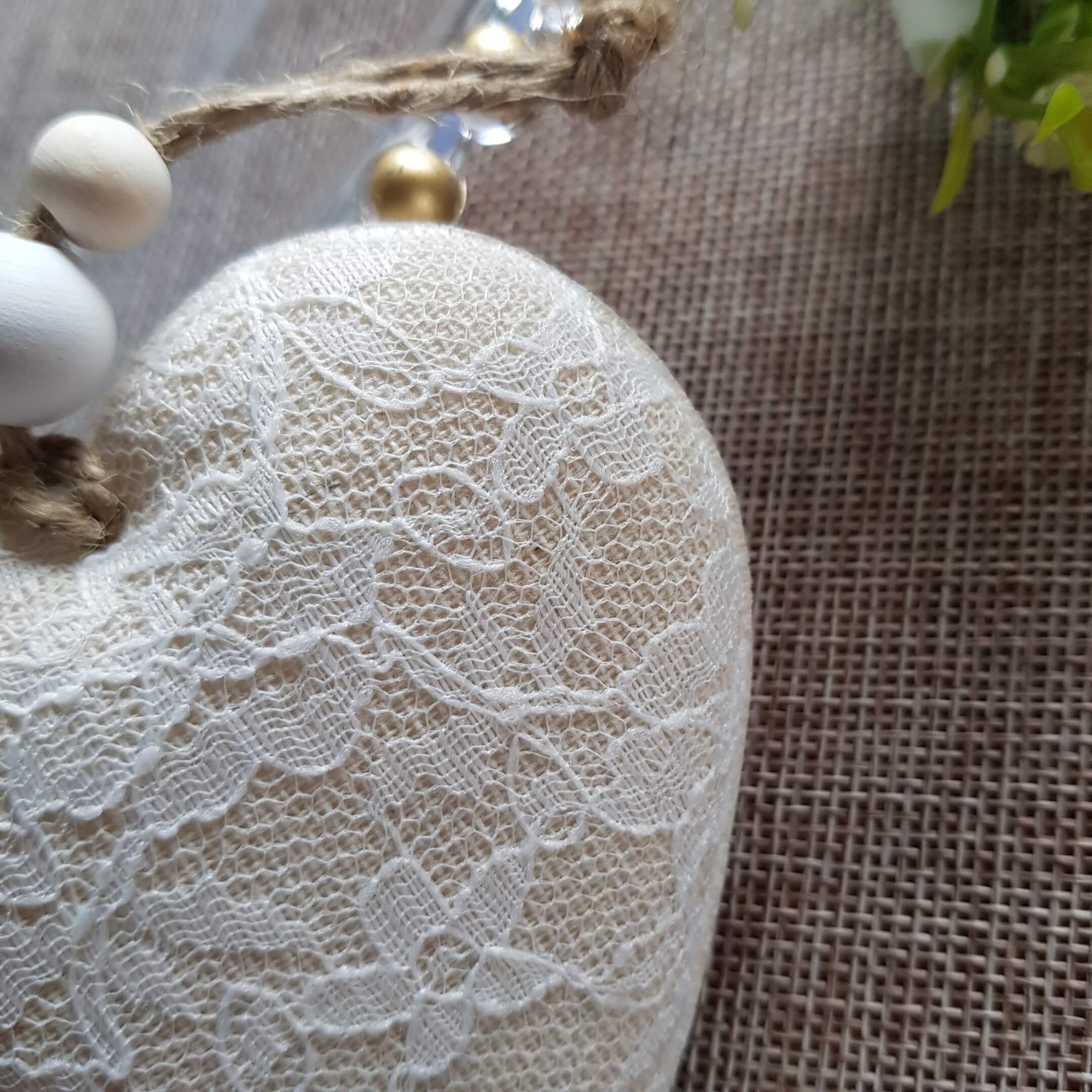 Serce materiałowe zawieszka ślub komunia beż 8cm