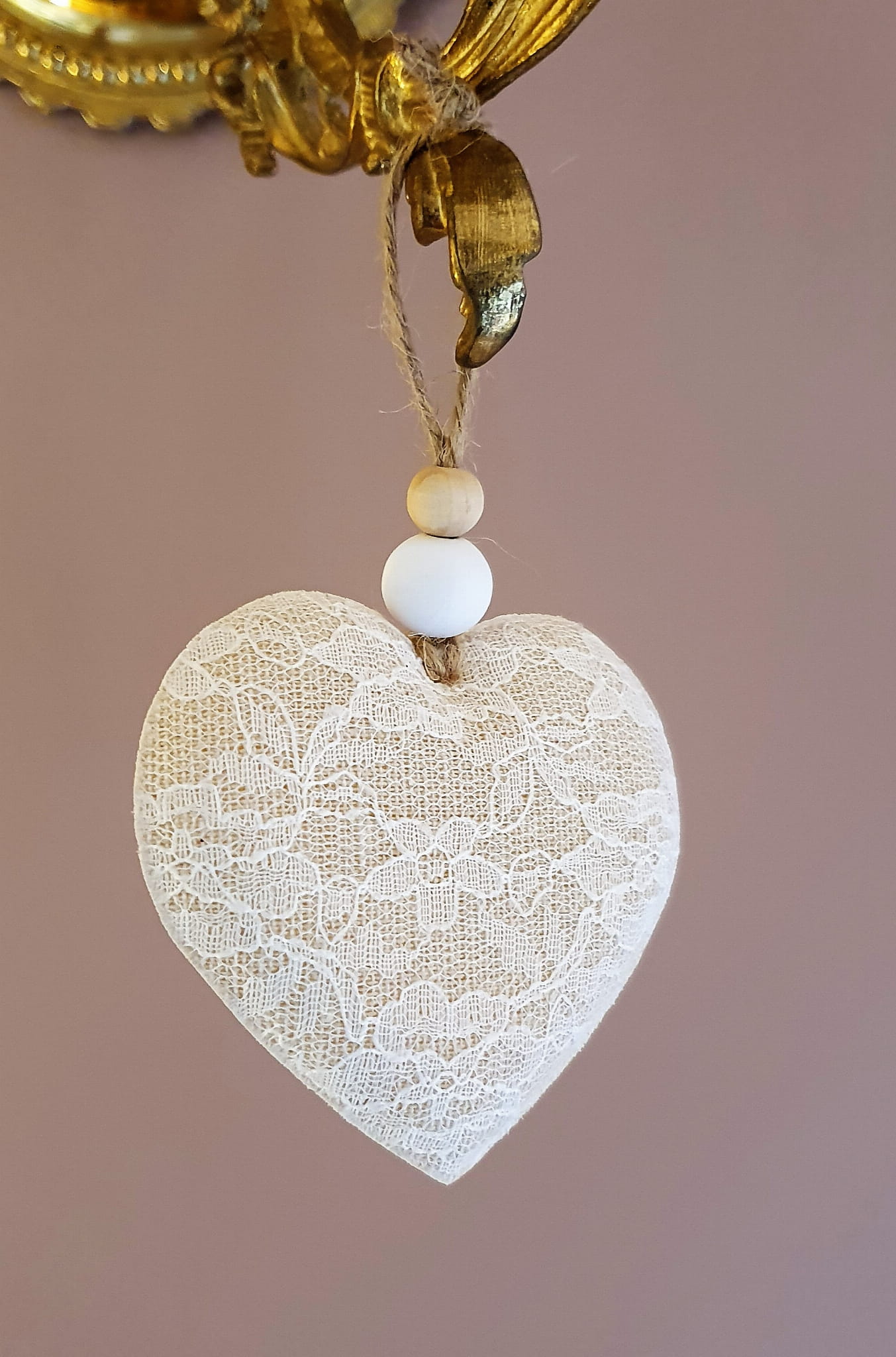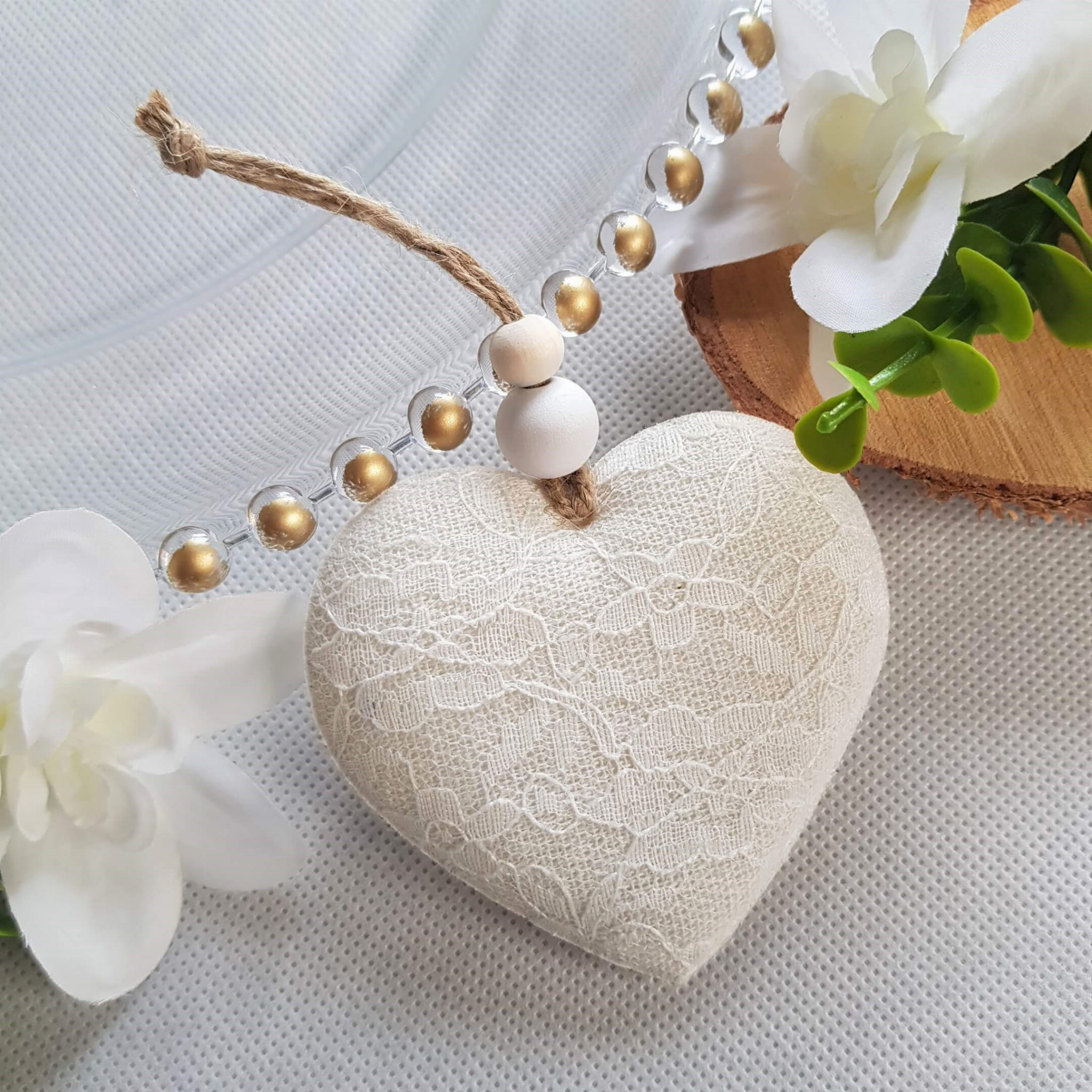 Serce materiałowe zawieszka ślub komunia krem 8cm