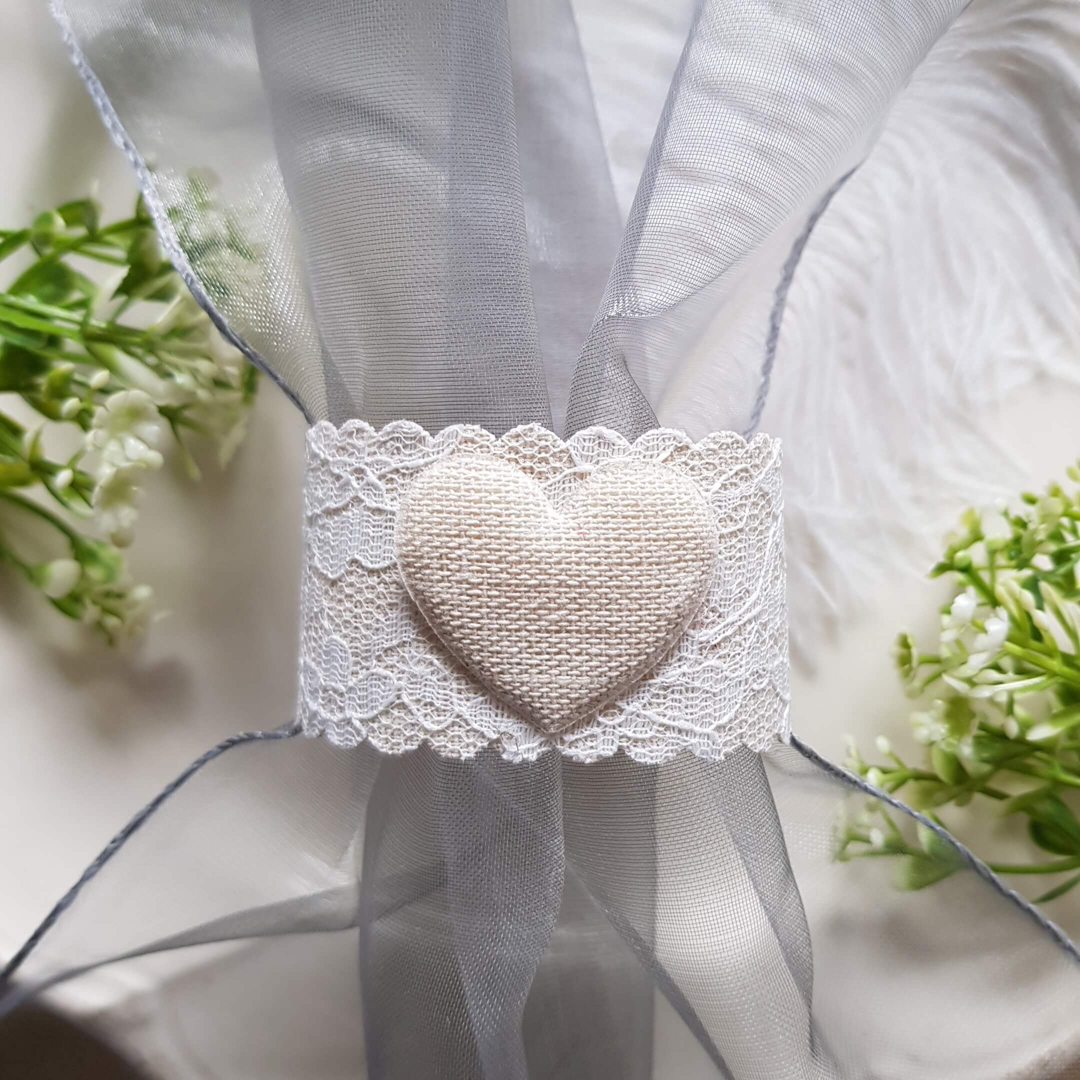 Serwetnik materiałowy z sercem koronka ślub komunia beż 1szt