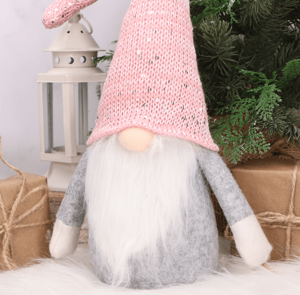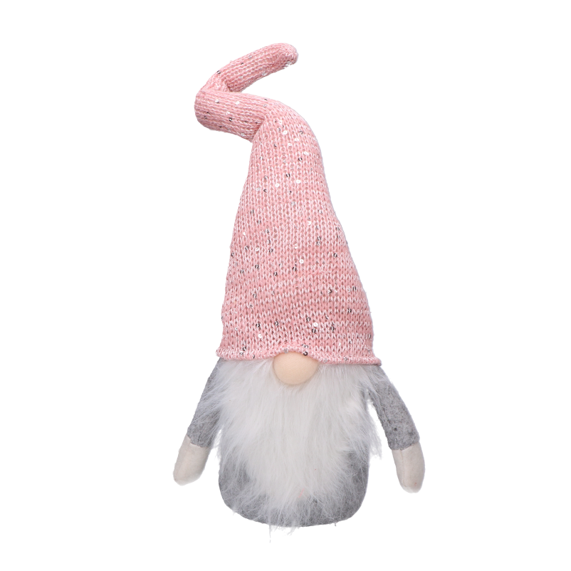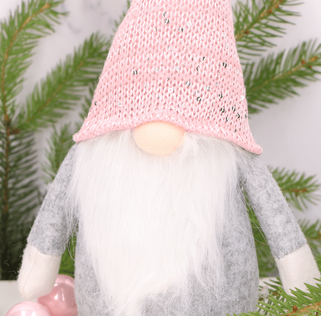 Skrzat świąteczny gnom cekiny szary, róż 50cm