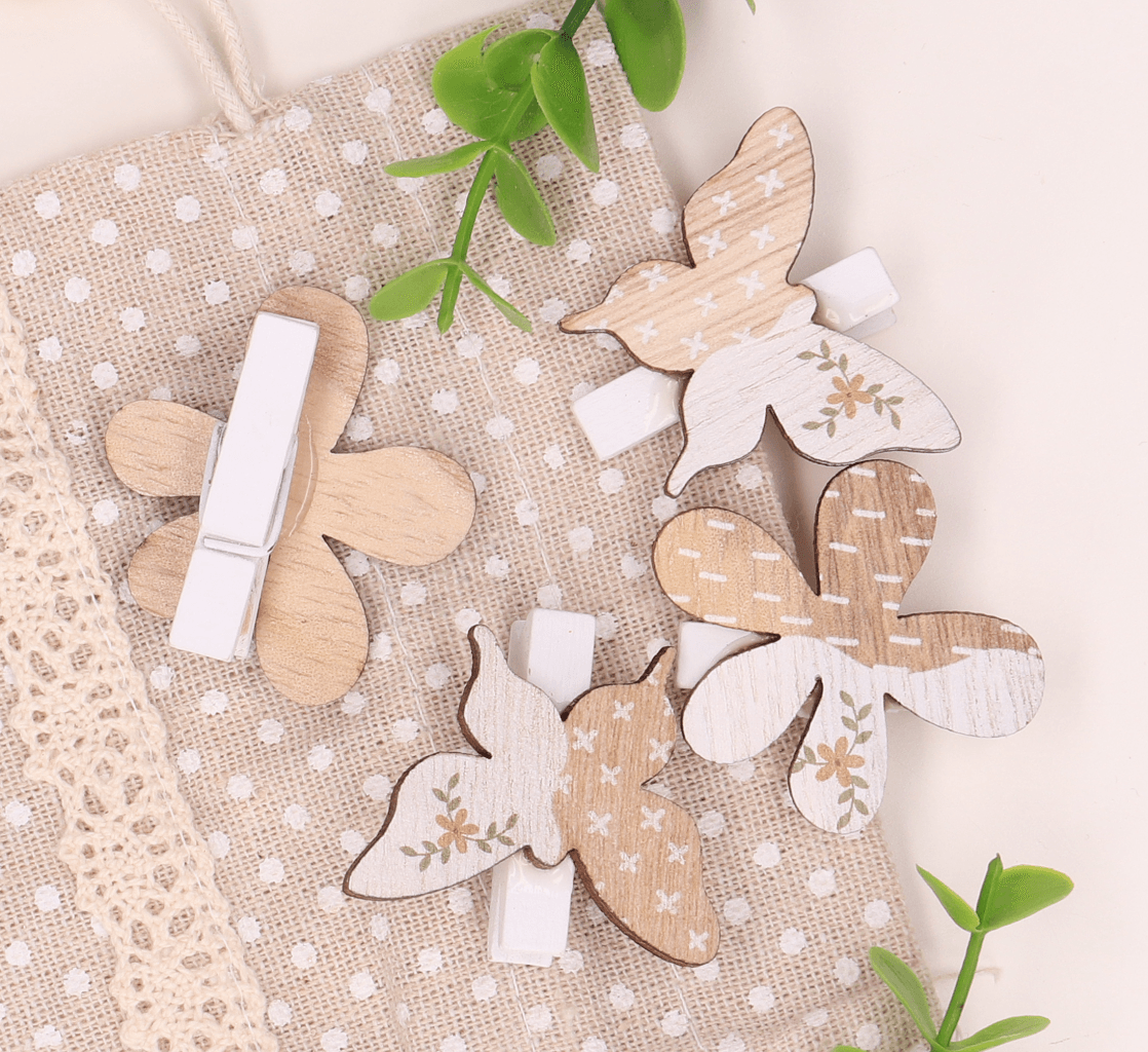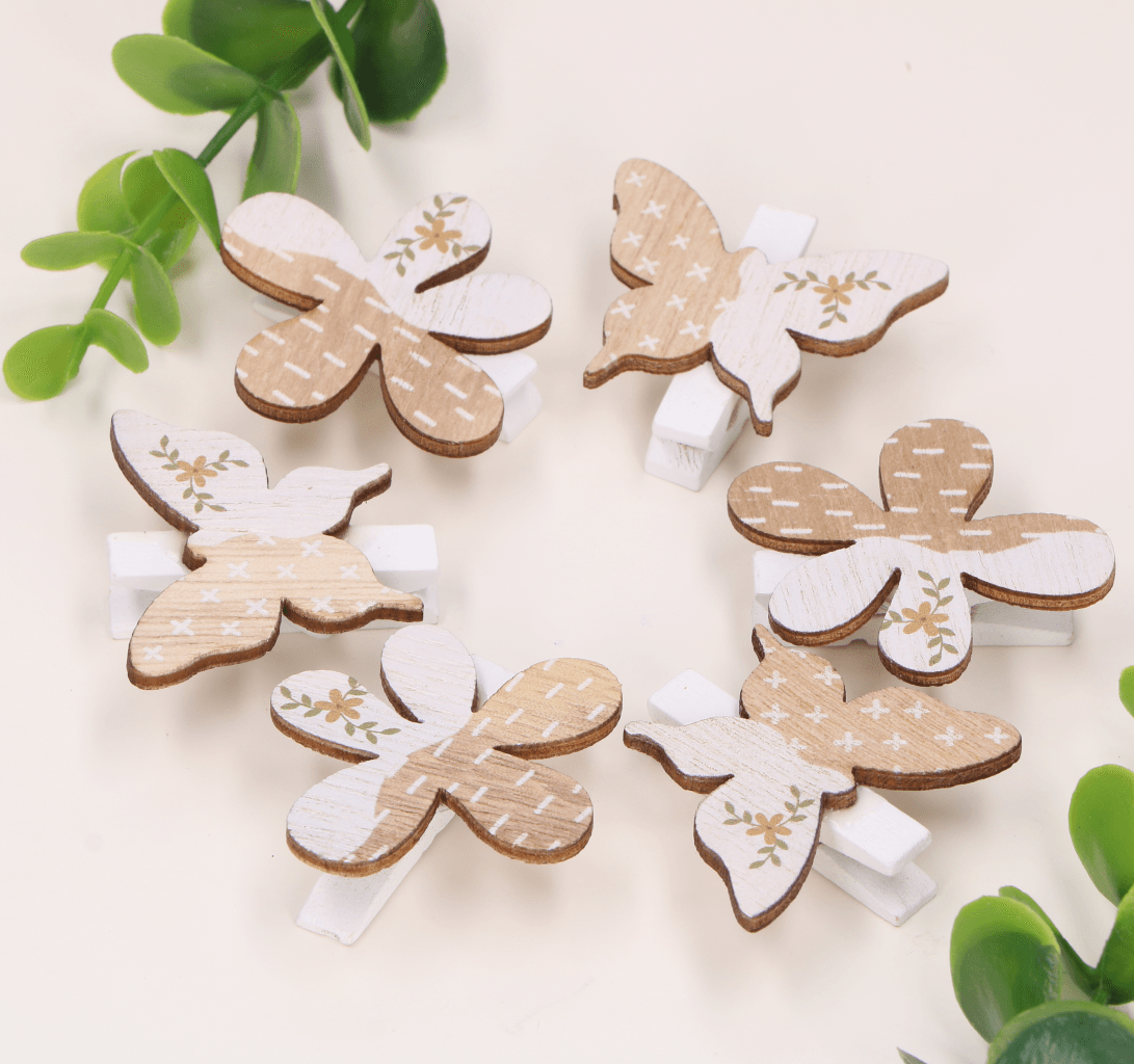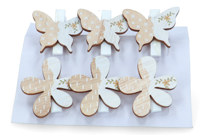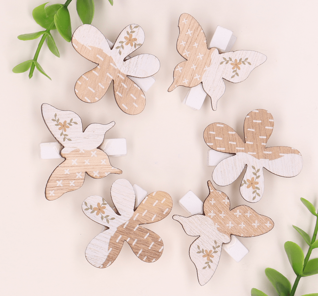 Spinacze kwiatki motylki naturalne 6szt