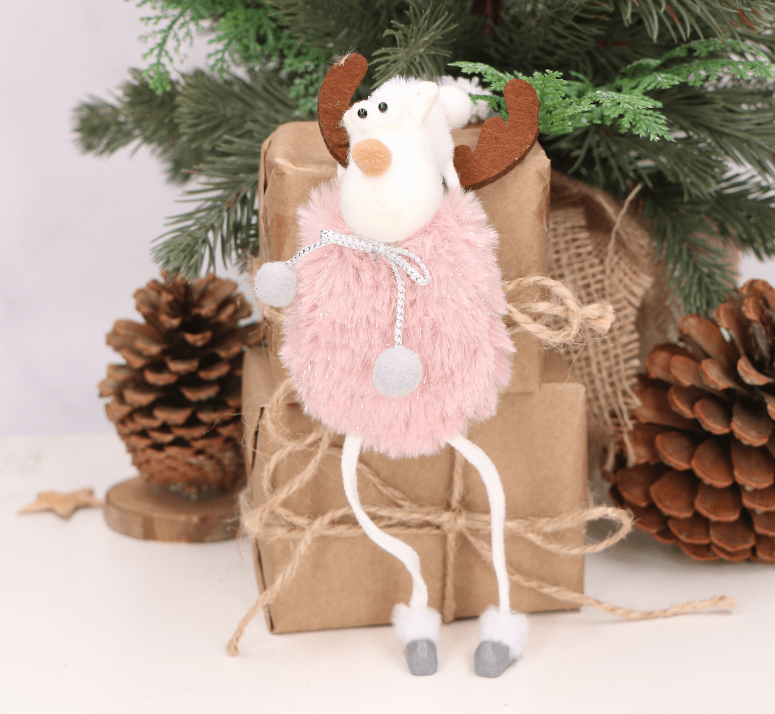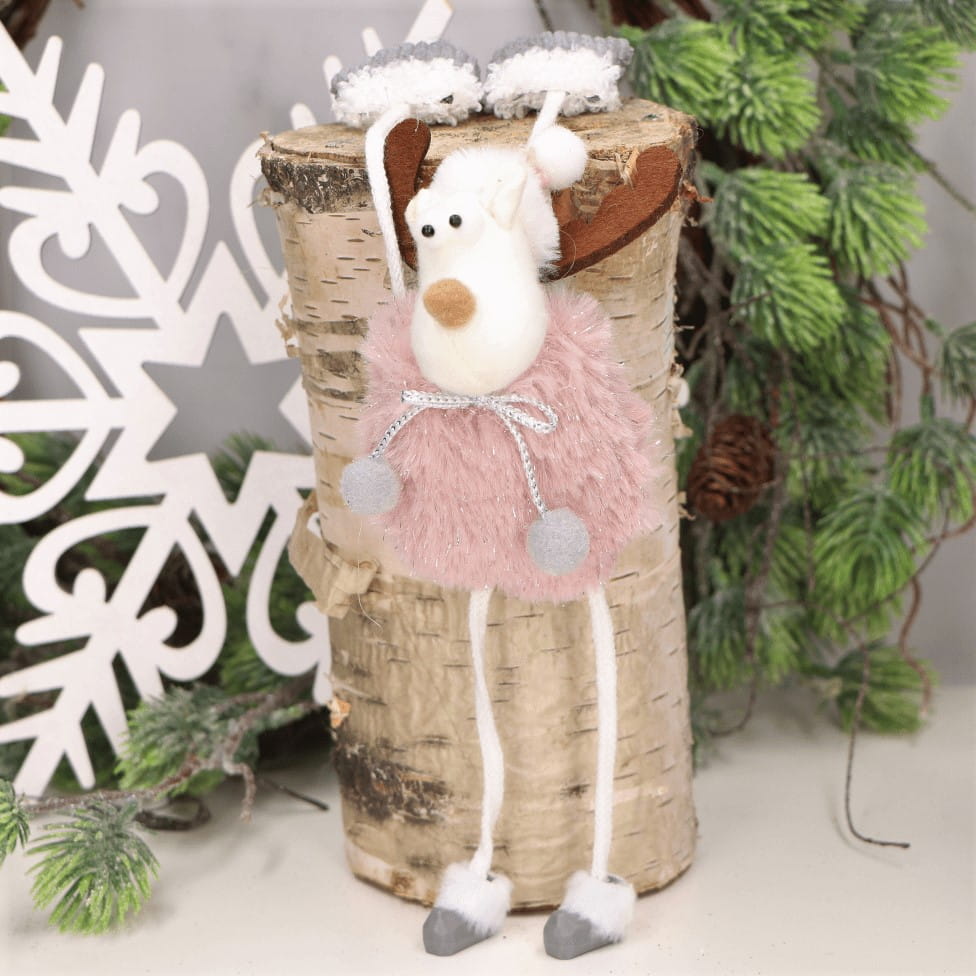 Świąteczny futerkowy renifer z obciążnikami na kominek półkę laleczka róż