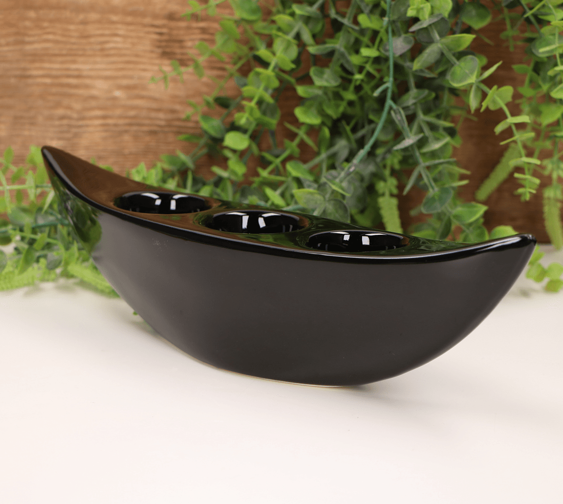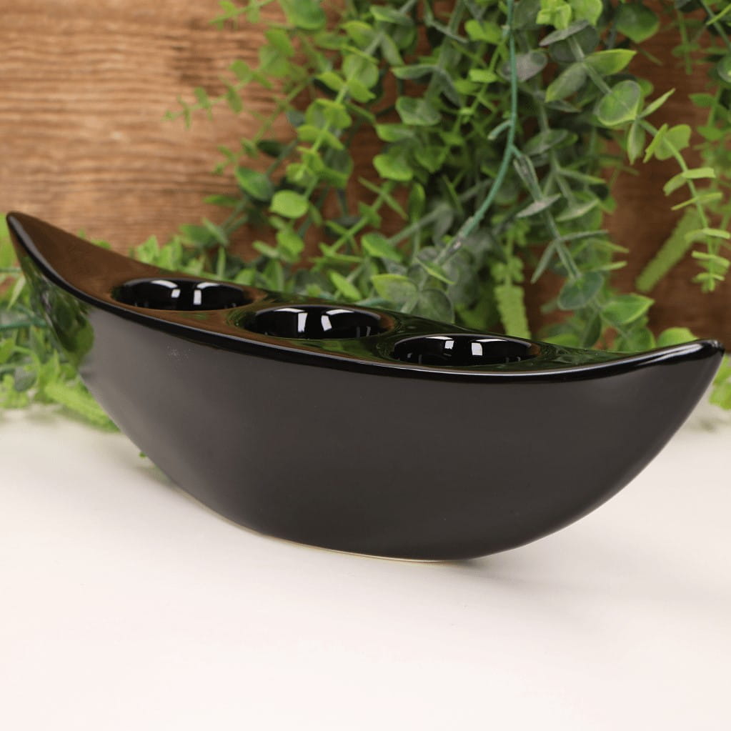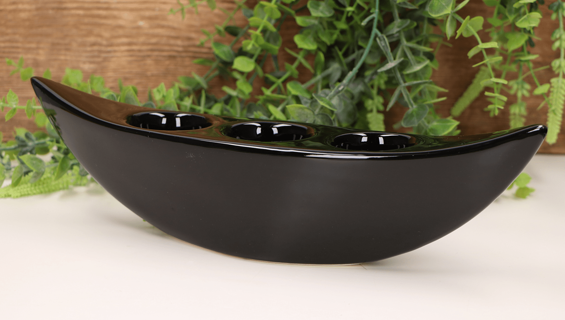 Świecznik Łódka III szkliwiony czarny 31cm.