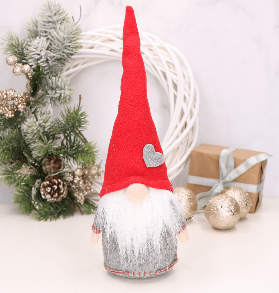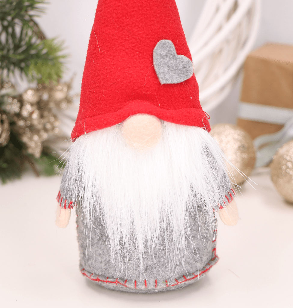 - Uroczy skrzat w czerwonej czapce z serduszkiem, szarym zarostem miękkim w dotyku to świąteczna magia w Twoim domu.