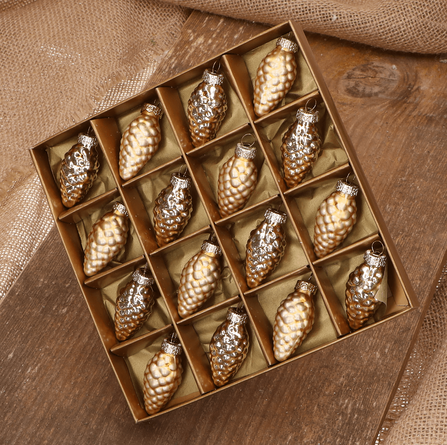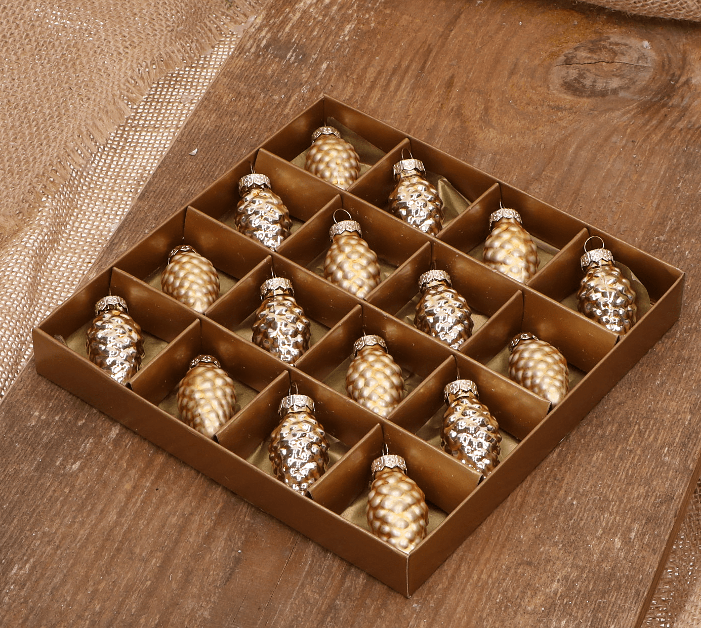 Szyszka szklana złota 4,5cm- 16 sztuk w złotym opakowaniu