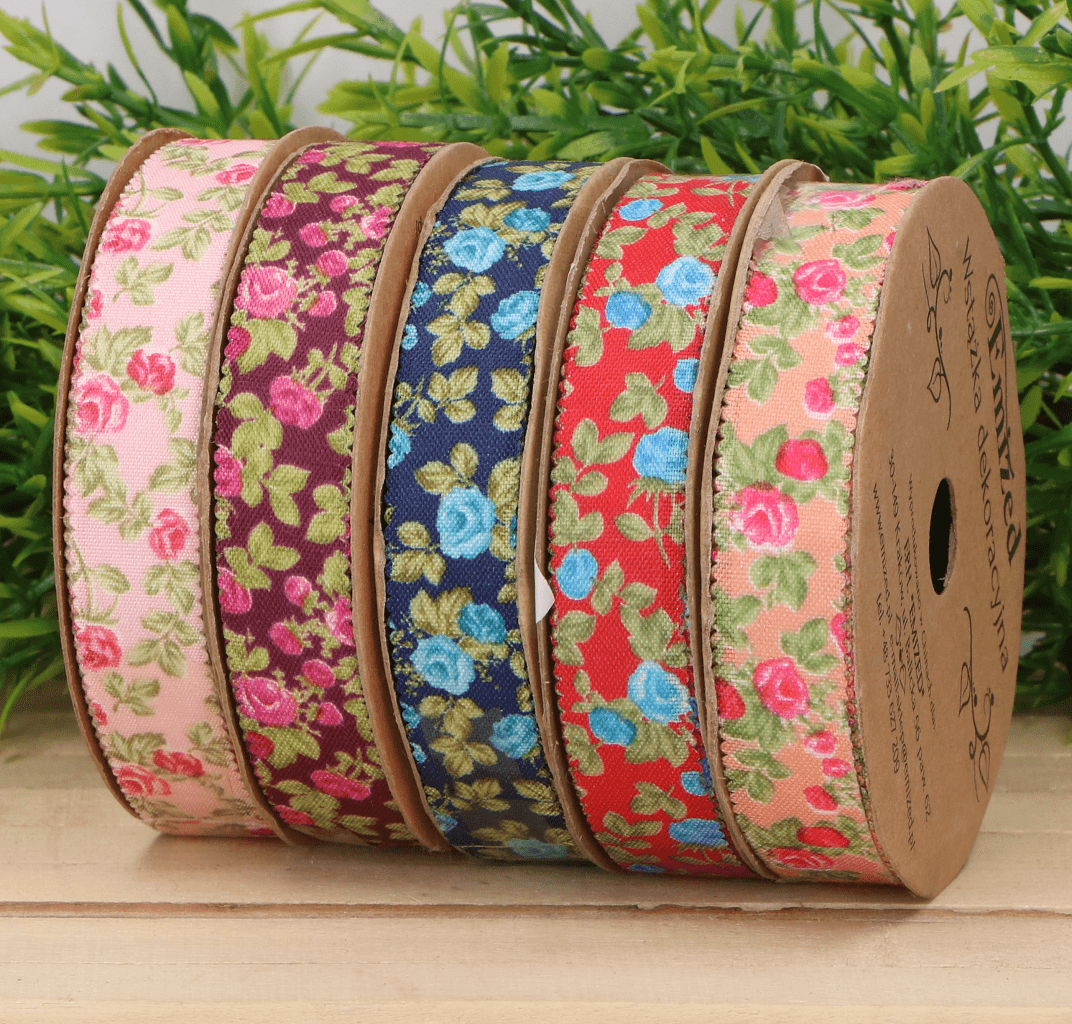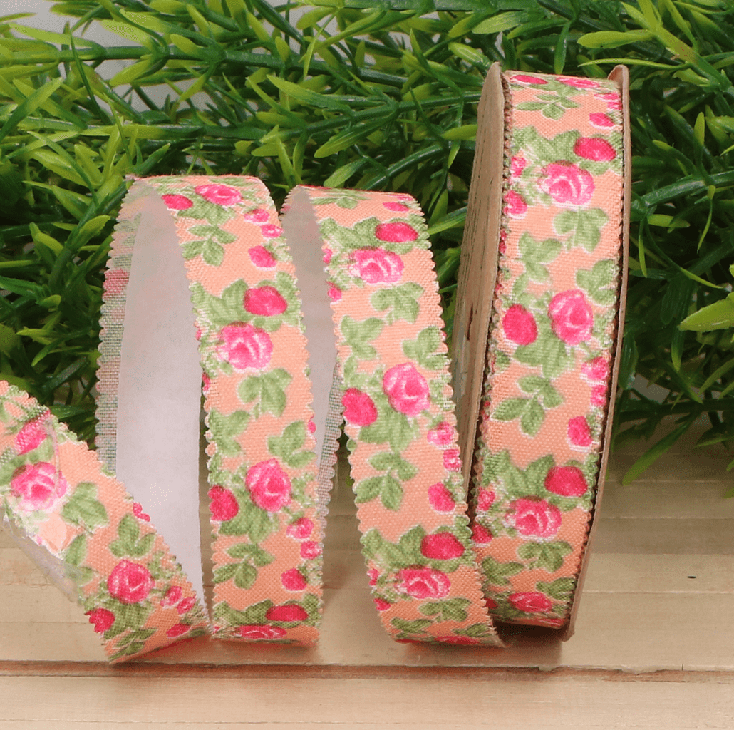 Tasiemka samoprzylepna w kwiaty czerwień 1,5cm