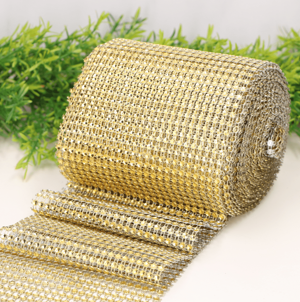 Taśma ozdobna z cyrkoniami złota 12cm x 10Y