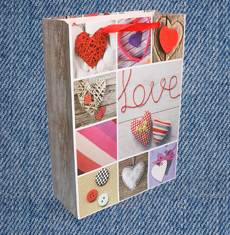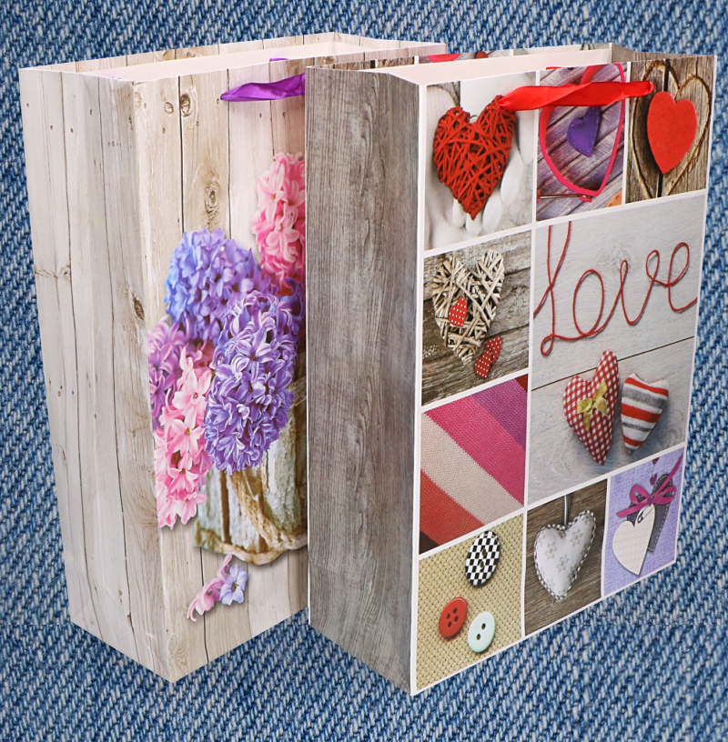 Torebka wykonana jest z wysokiej jakości papieru kredowego, jest bardzo wytrzymała, dzięki oryginalnemu wzorowi świetnie sprawdzi się jako wyjątkowe opakowania na prezent.