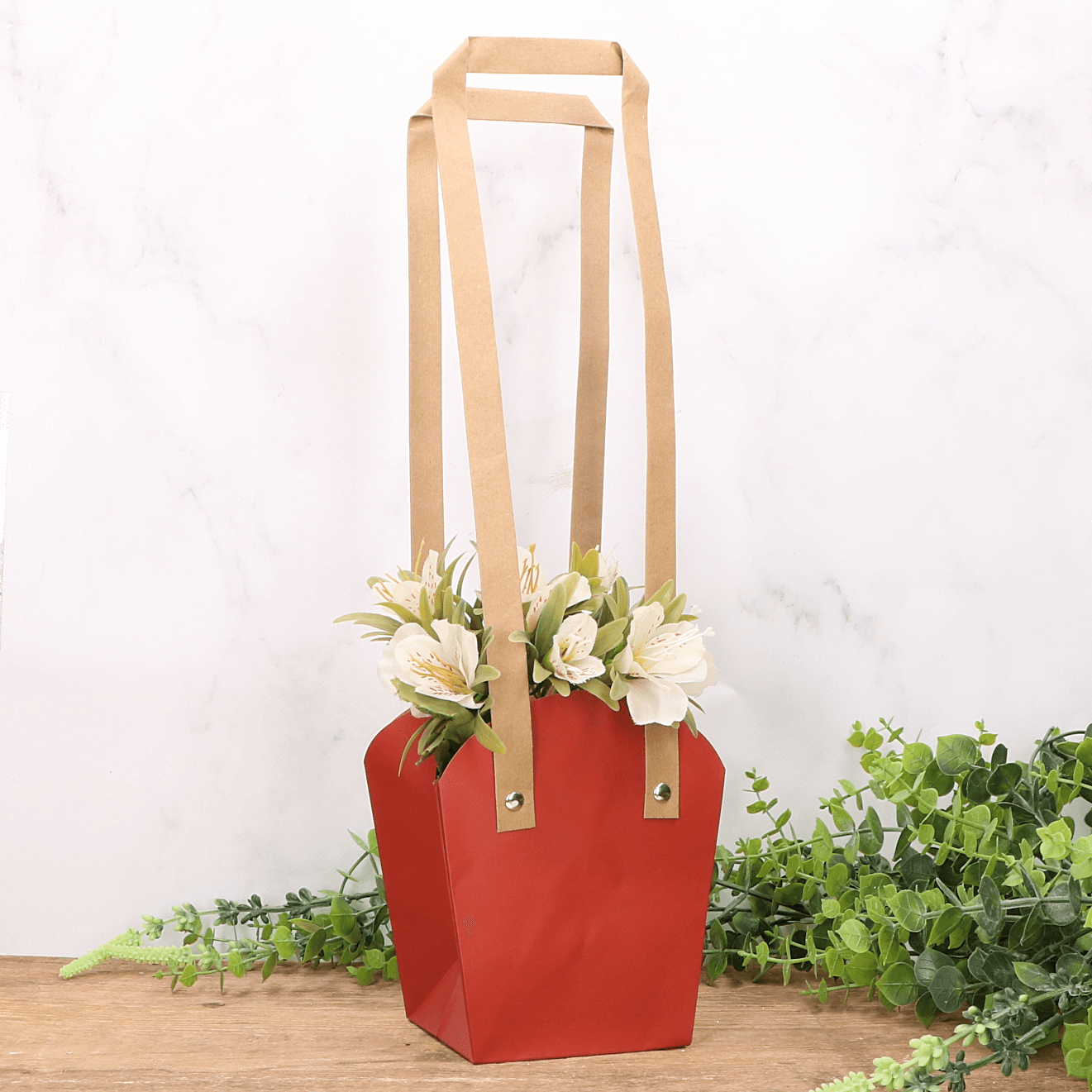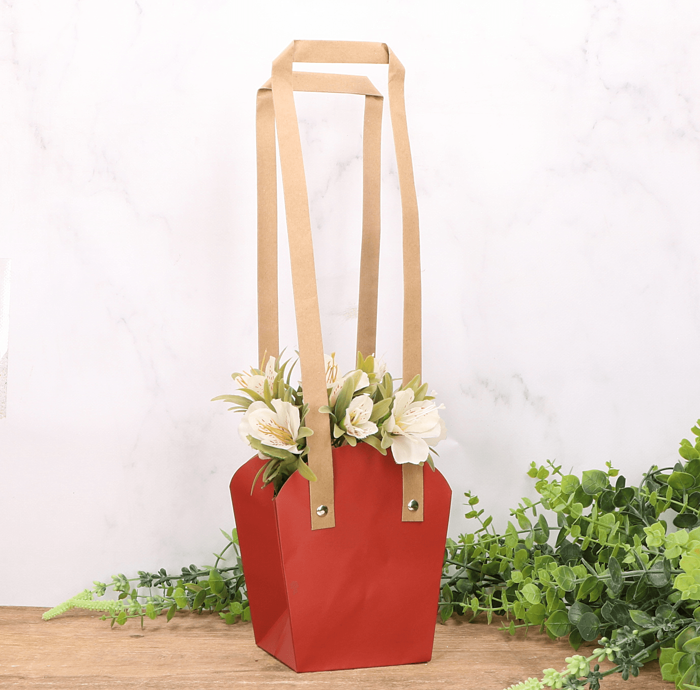 - Torebka na kwiaty z papieru sprawia, że prezentowanie kwiatów staje się naprawdę wyjątkowe, co czyni ją doskonałym dodatkiem do upominku.