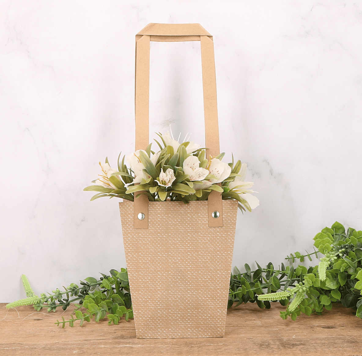 - Torebka na kwiaty z papieru sprawia, że prezentowanie kwiatów staje się naprawdę wyjątkowe, co czyni ją doskonałym dodatkiem do upominku.