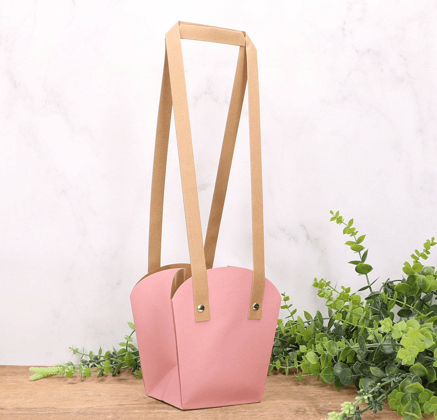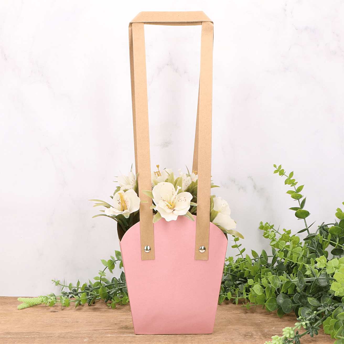 Torebka na kwiaty różowa z naturalnym uchwytem 15x13 cm