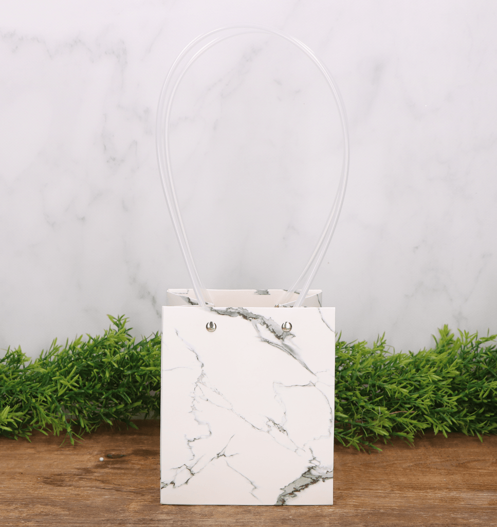Torebka na kwiaty z uchwytem marmur biel 36cm
