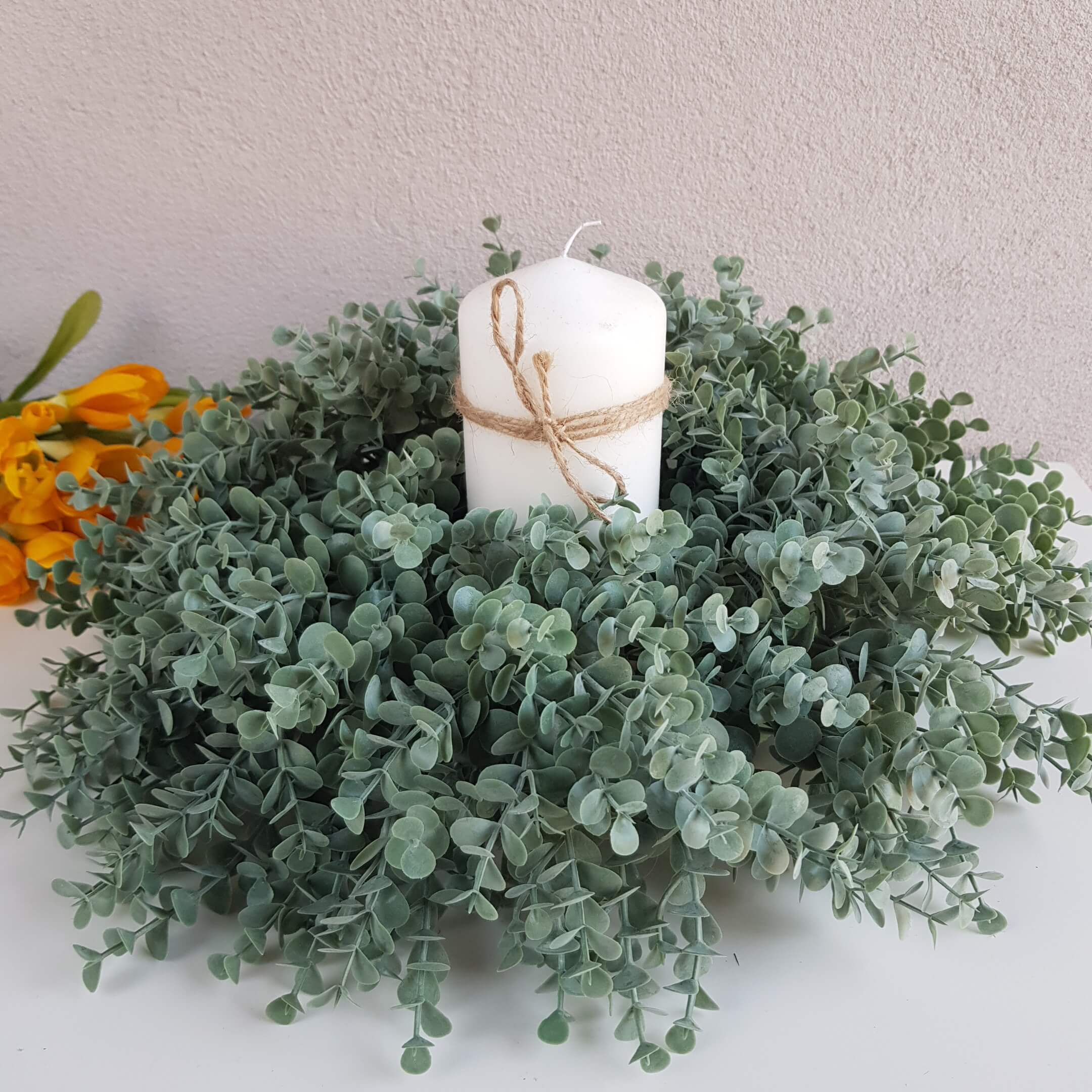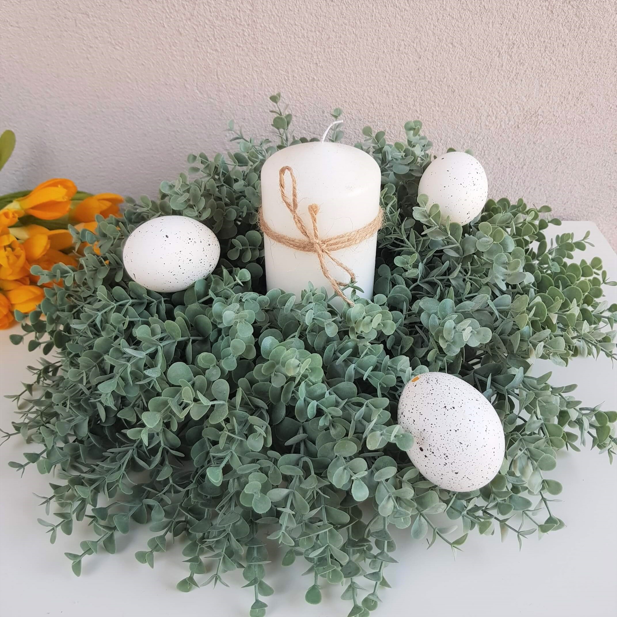 Wianek sztuczny zielony gęsty eukaliptus 38cm