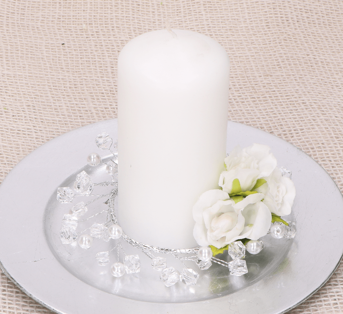 Wianuszek z białymi perełkami i kryształkami to ozdoba, którą możesz ustroić kościół na Komunię lub Ślub. Możesz używać go również na co dzień, jako np. ozdoba świeczki. Świeczki umieszczone w środku wianka nadają pomieszczeniu ciepła i przytulności. Biel symbolizuje czystość i niewinność, a także odnowę życia duchowego. Stroik wykonany z druciku i perełek. Urocze i delikatne perełki na druciku będą doskonałym dodatkiem do wystroju sali weselnej, komunijnej, na chrzest, jak również w aranżacjach domowego zacisza.