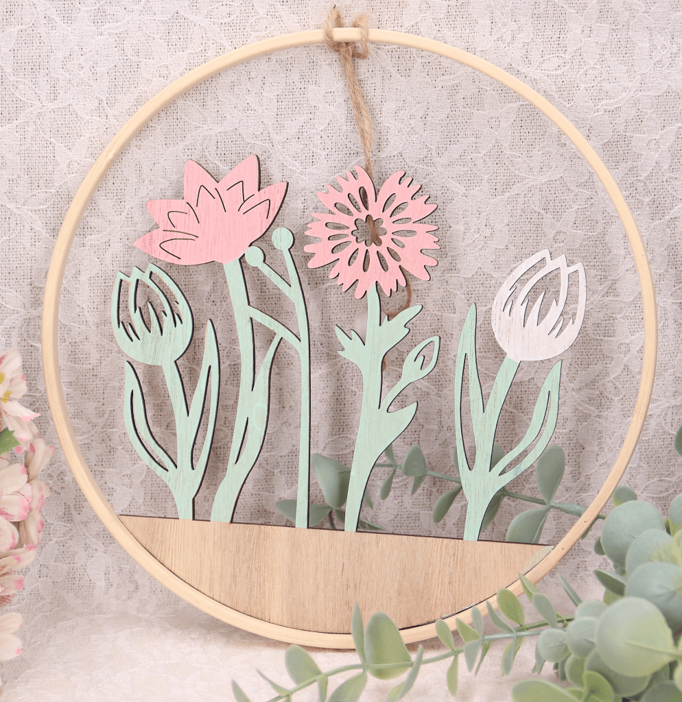Wiosenna zawieszka pastelowa kwiatki drewniana 20cm