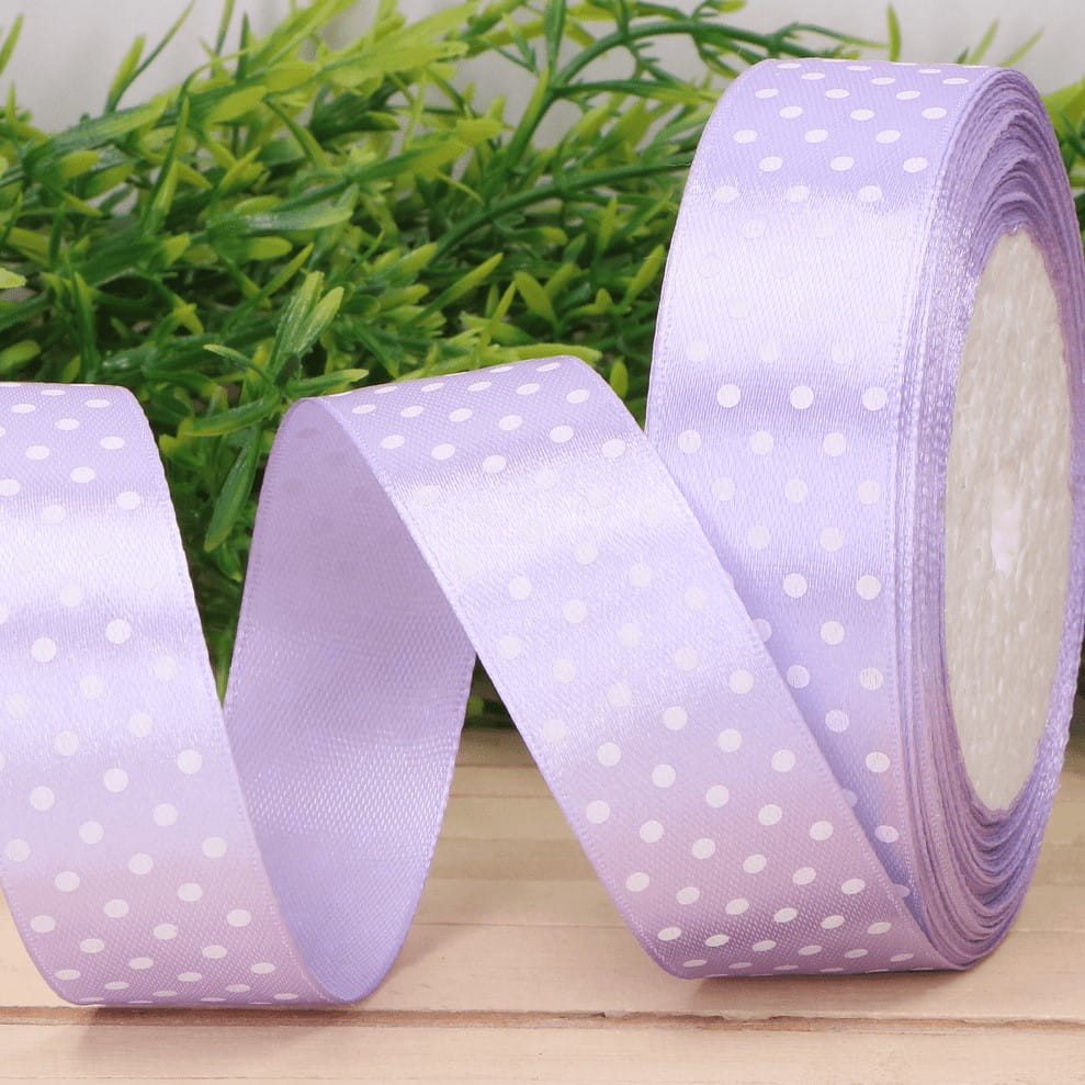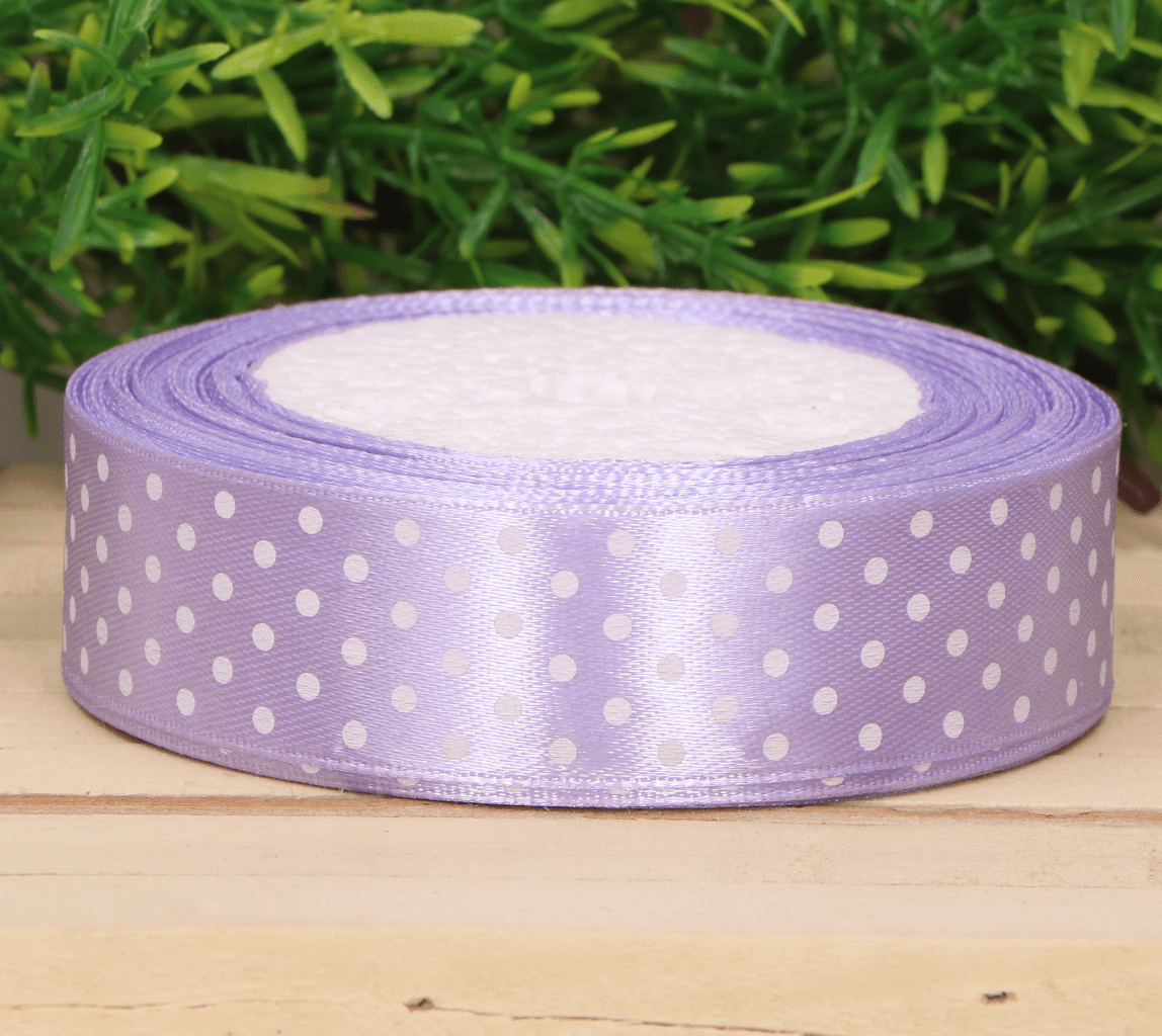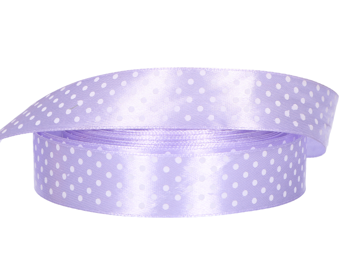 Wstążka w kropki atłasowa fiolet jasny 2,5cm x 23 m