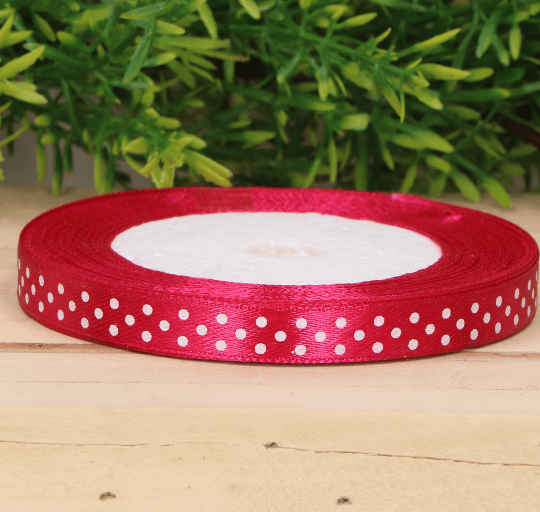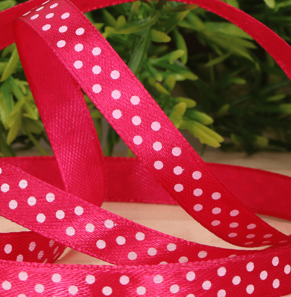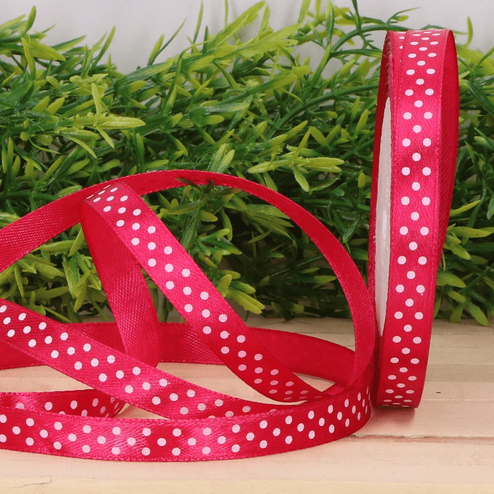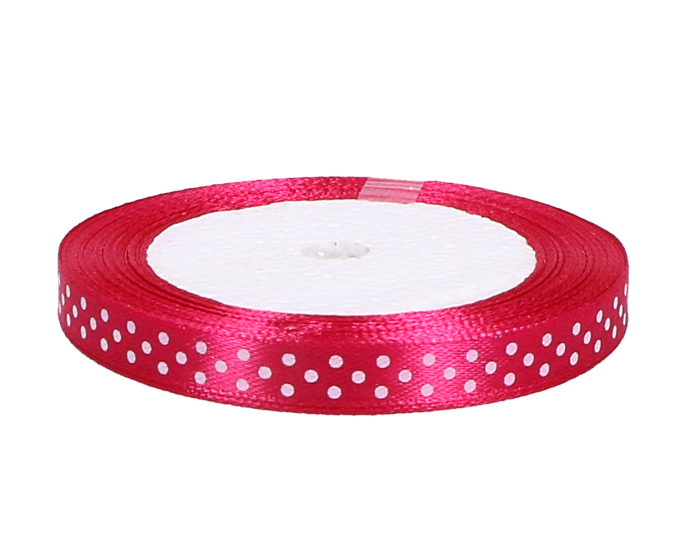 Wstążka w kropki atłasowa fuksja 1cm x 23 m