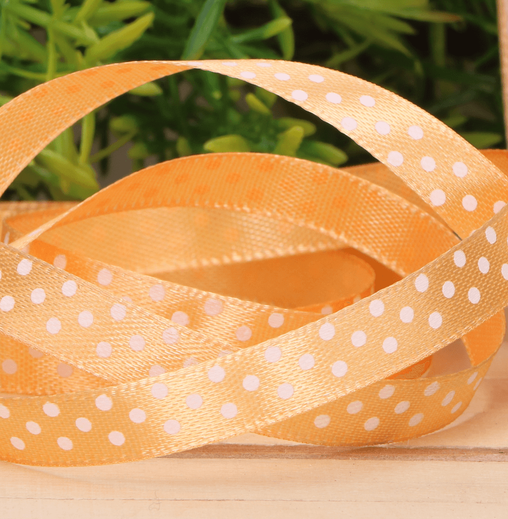 Wstążka w kropki atłasowa pomarańcz 1cm x 23 m