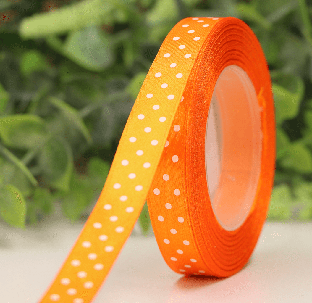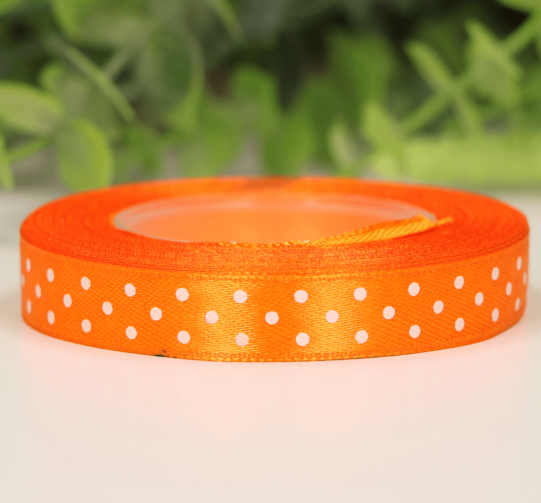 Wstążka w kropki atłasowa pomarańczowa 1,2cm x 20Y