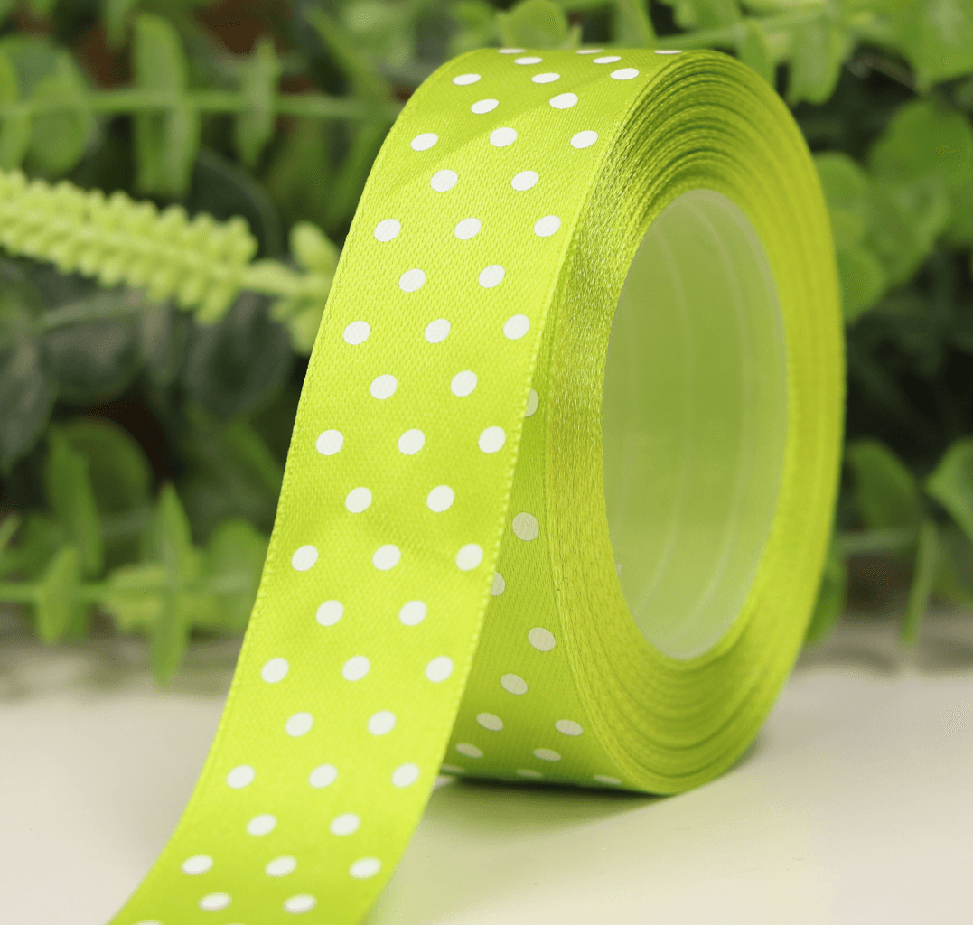 Wstążka w kropki atłasowa zielona 2,5cm x 20Y