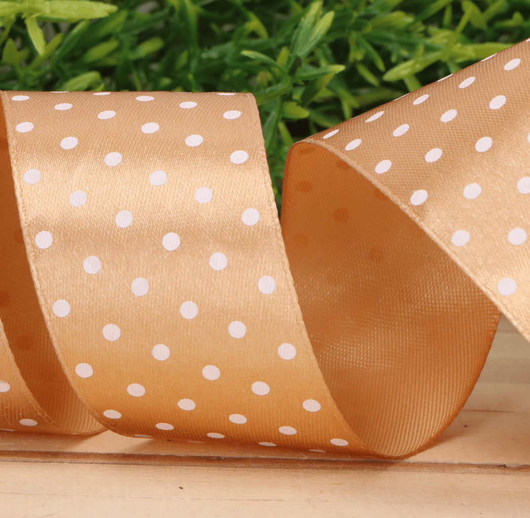 Wstążka w kropki atłasowa złoto 4cm x 23m