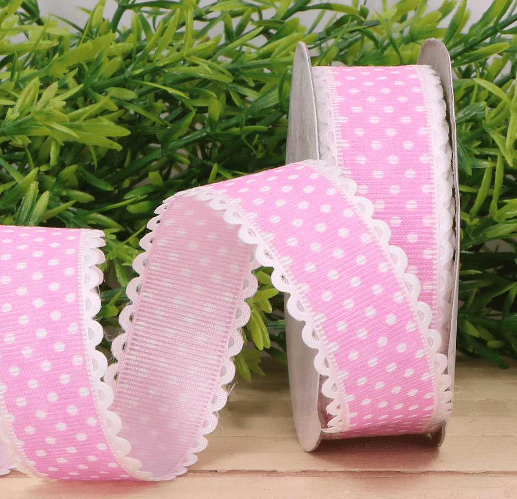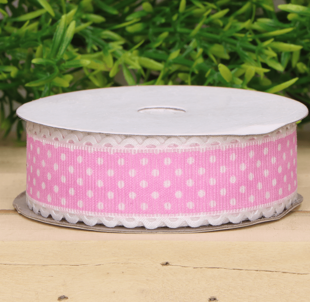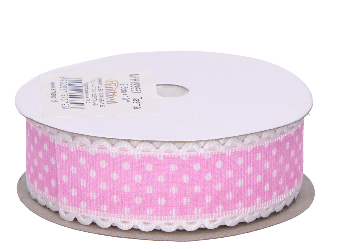 Wstążka w kropki jasny różowy 2,5cm 9m