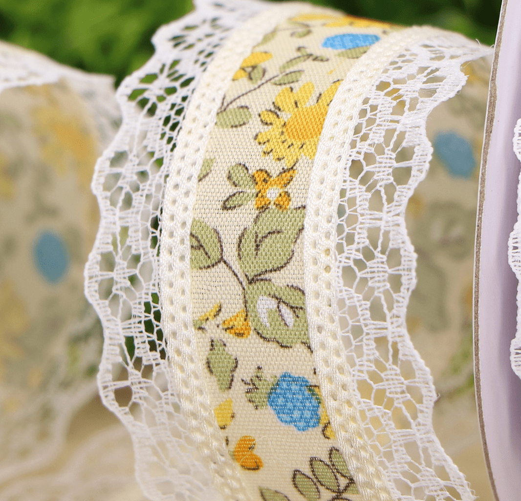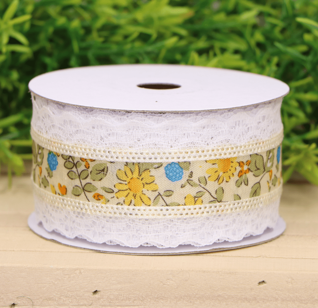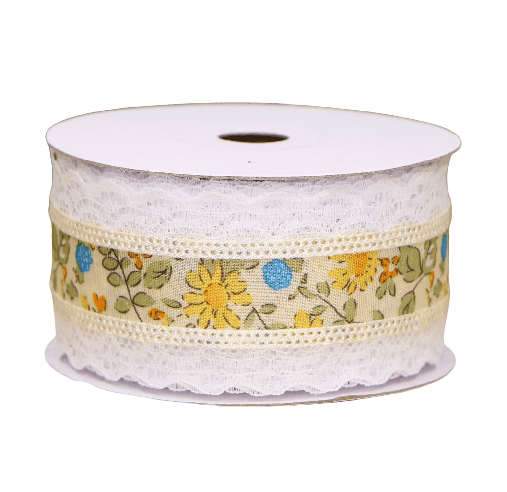 Wstążka z koronką w kwiaty 4cm