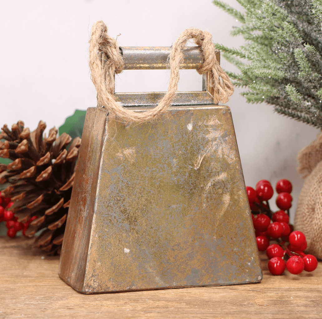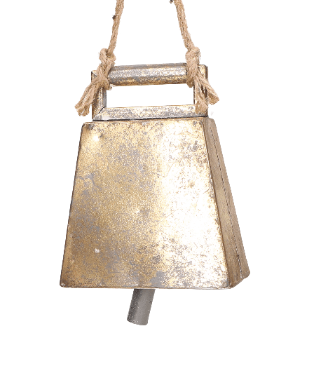 Zawieszka dzwonek metalowy, złoty na sznurku 16cm