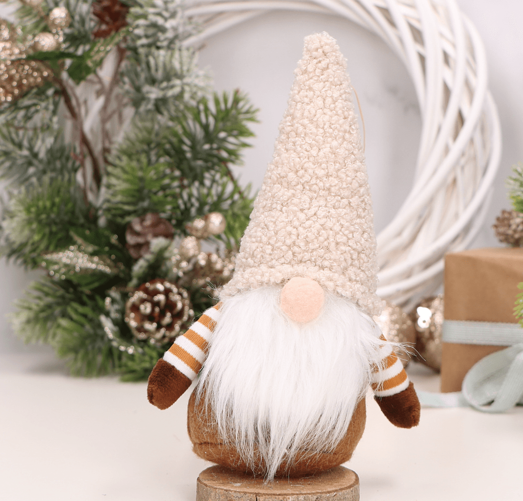 Zawieszka krasnal brązowy z beżową czapką - 20 cm