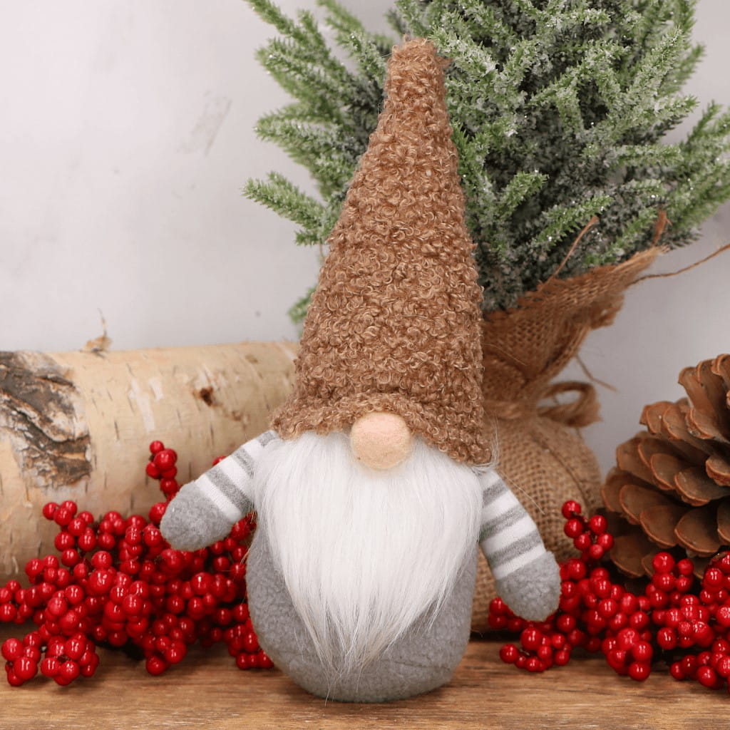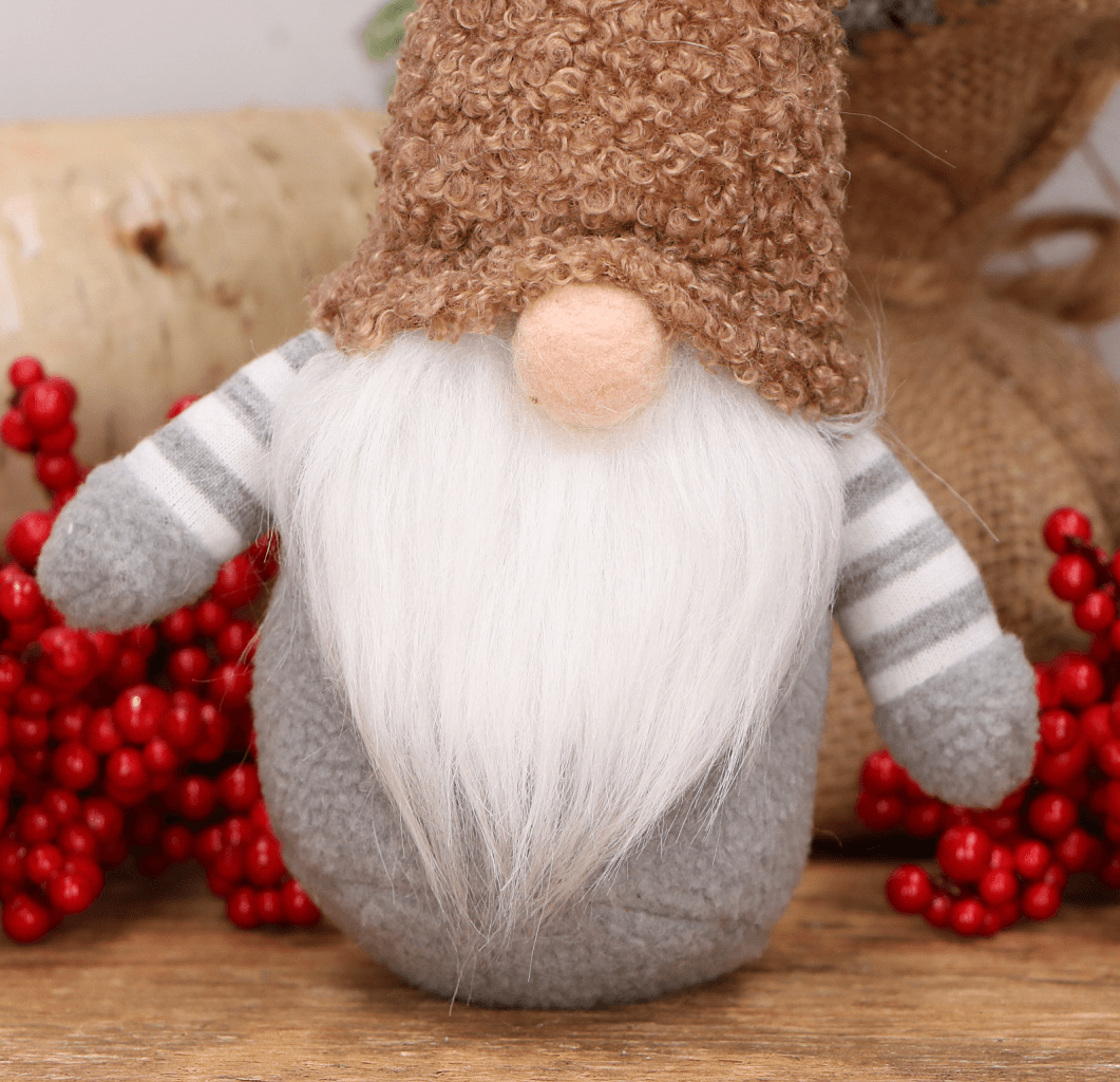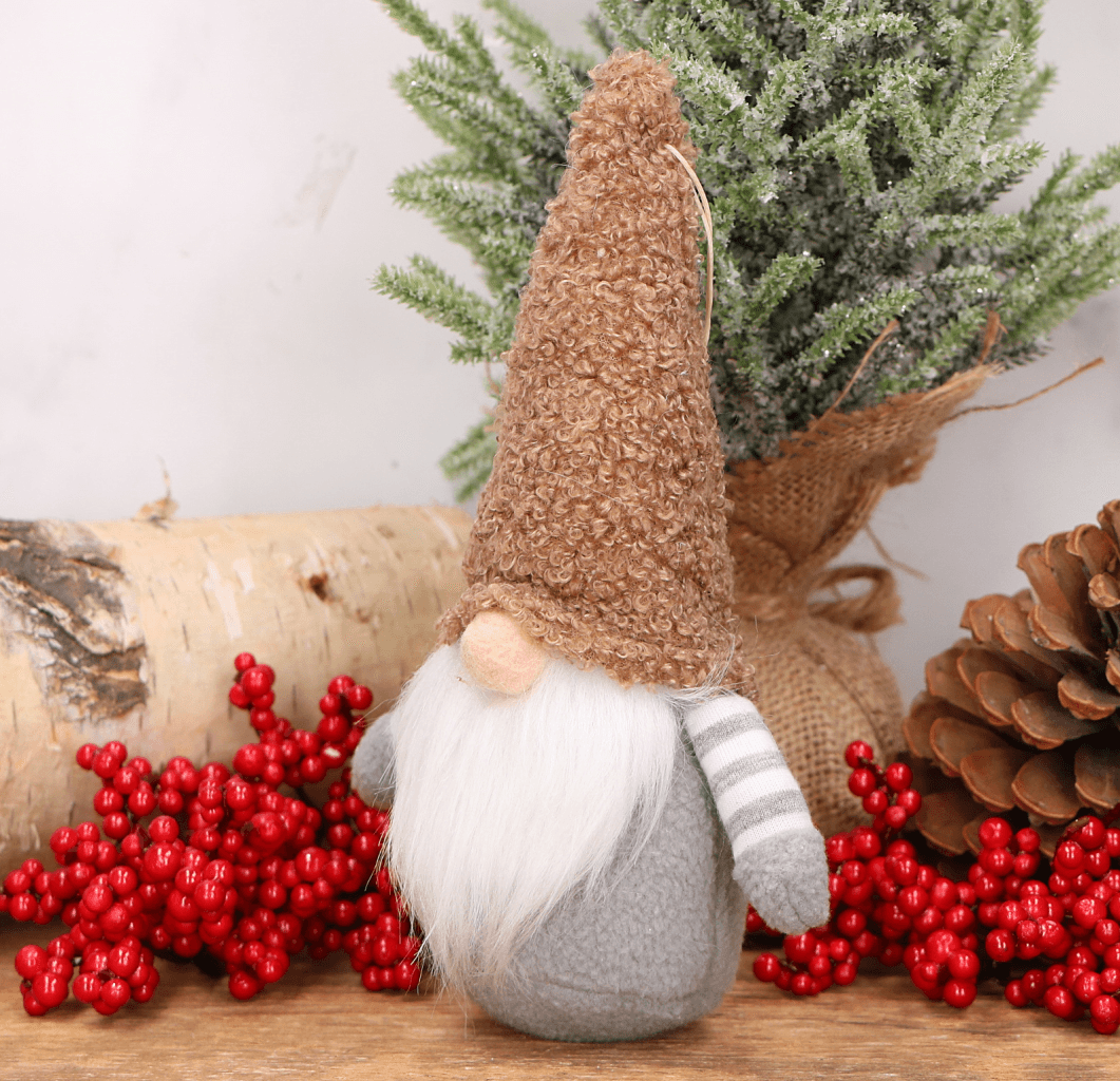 Zawieszka krasnal szary z brązową czapką - 20 cm