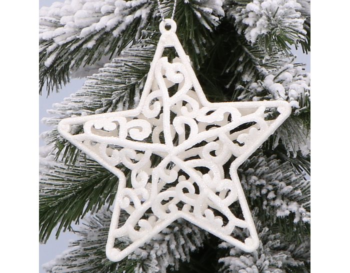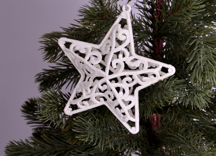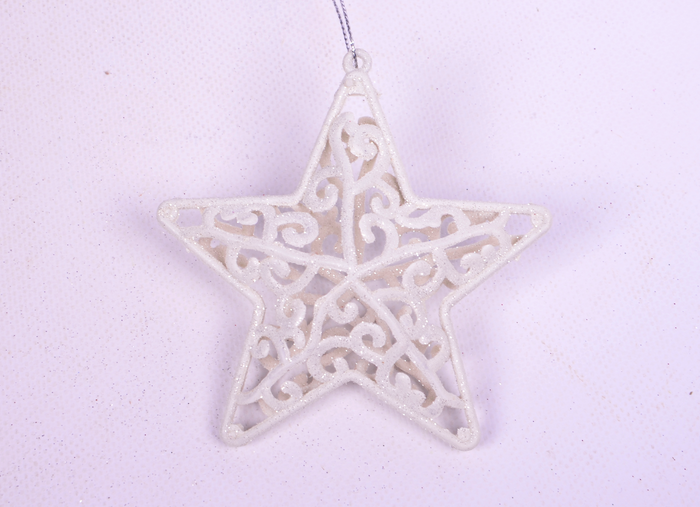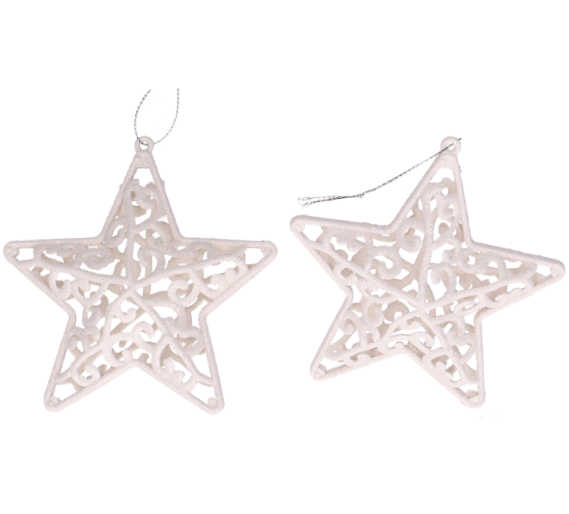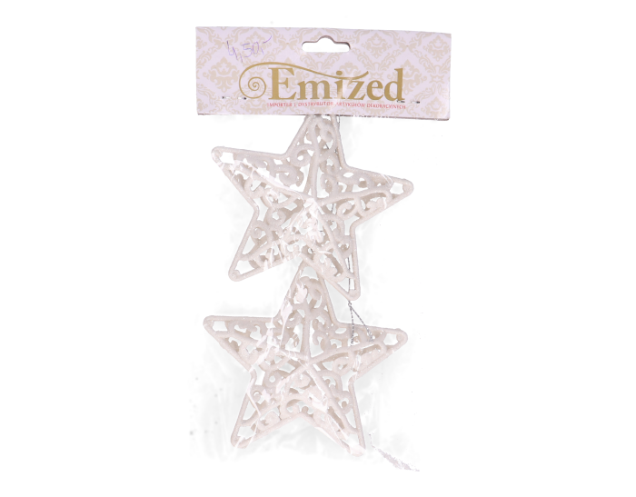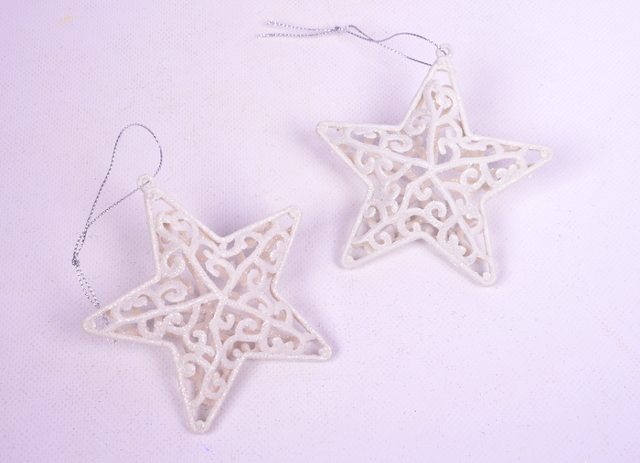 Zawieszki brokatowe na choinkę plastikowe gwiazdy białe 2 szt.
