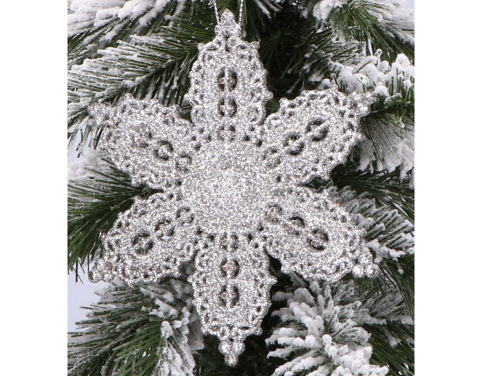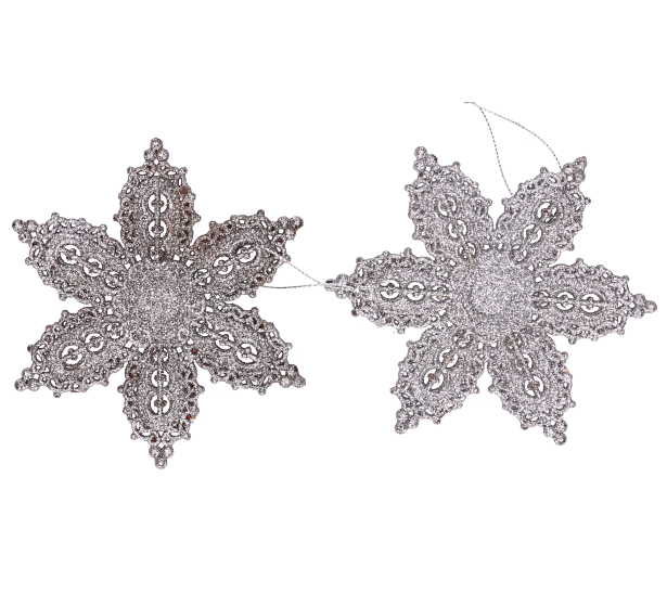 Zawieszki brokatowe na choinkę plastikowe śnieżynki srebrne 2 szt.