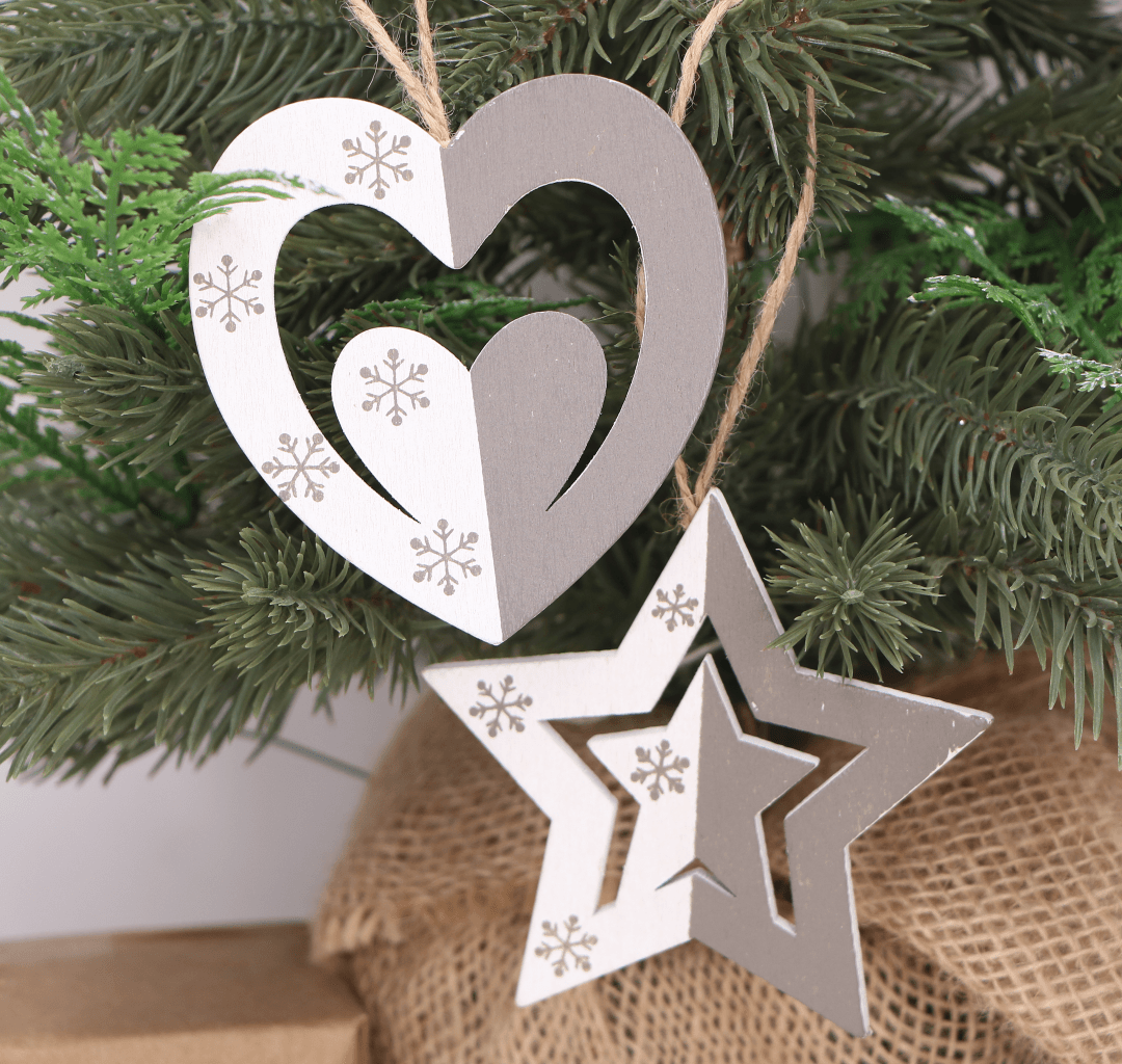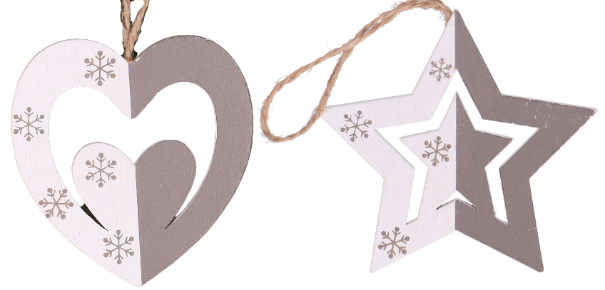 Zestaw zawieszek na choinkę serce+gwiazdka szare 2szt