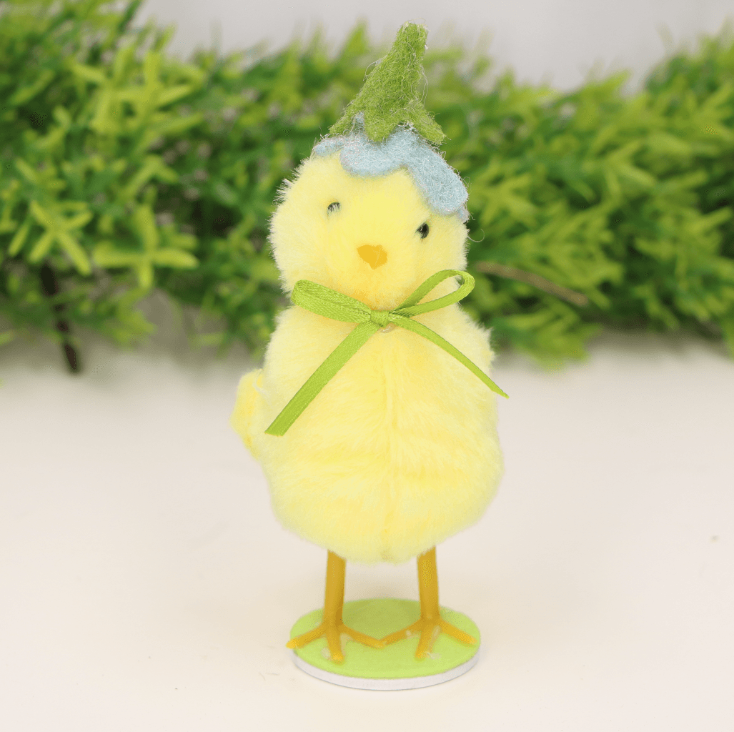 Żółty kurczaczek w zielonej czapce 13cm